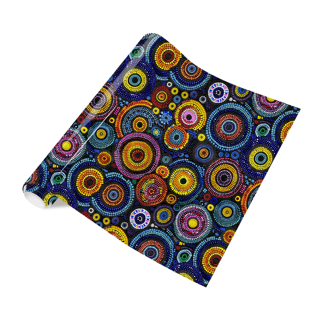 Tintnut African Blue Multicolor Circle Pattern Heat Transfer Vinyl Patterned HTV for Fabric Iron on Vinyl for T-Shirts