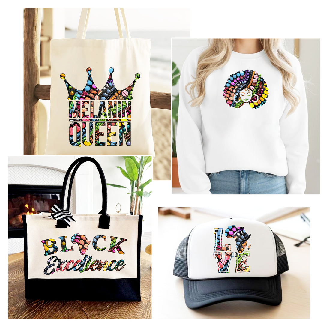 Tintnut African Colorful Striped Stone Bead Pattern Heat Transfer Vinyl Patterned HTV for Fabric Iron on Vinyl for T-Shirts