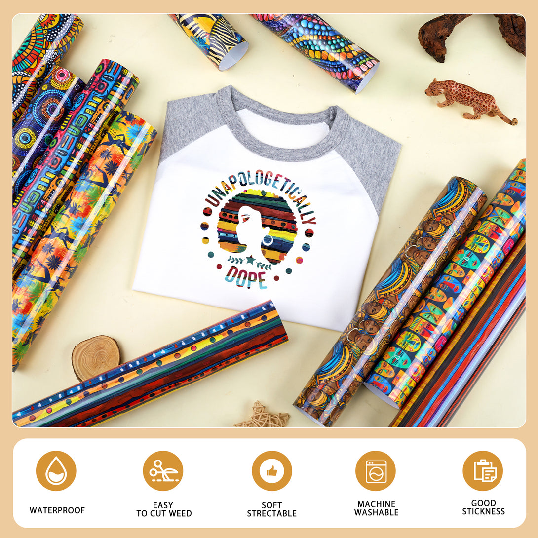 Tintnut African Rainbow Striped Pattern Heat Transfer Vinyl Patterned HTV for Fabric Iron on Vinyl for T-Shirts
