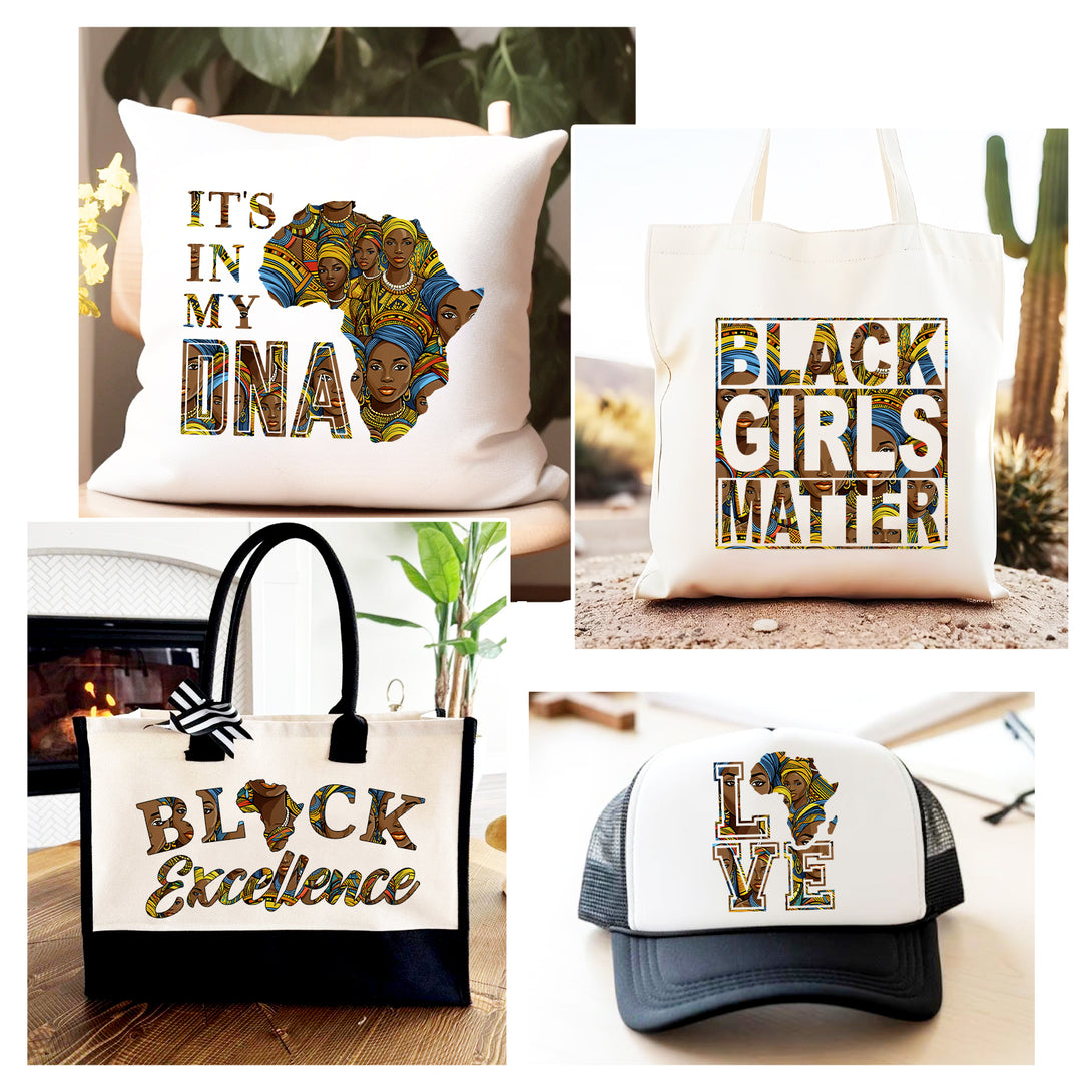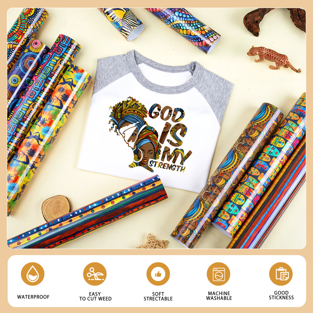 Tintnut African Tribal Brown Skin Women Pattern Heat Transfer Vinyl Patterned HTV for Fabric Iron on Vinyl for T-Shirts