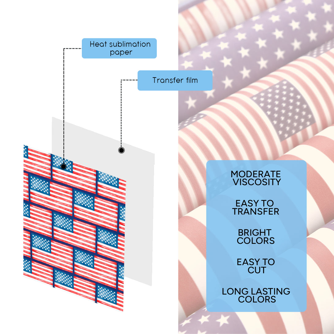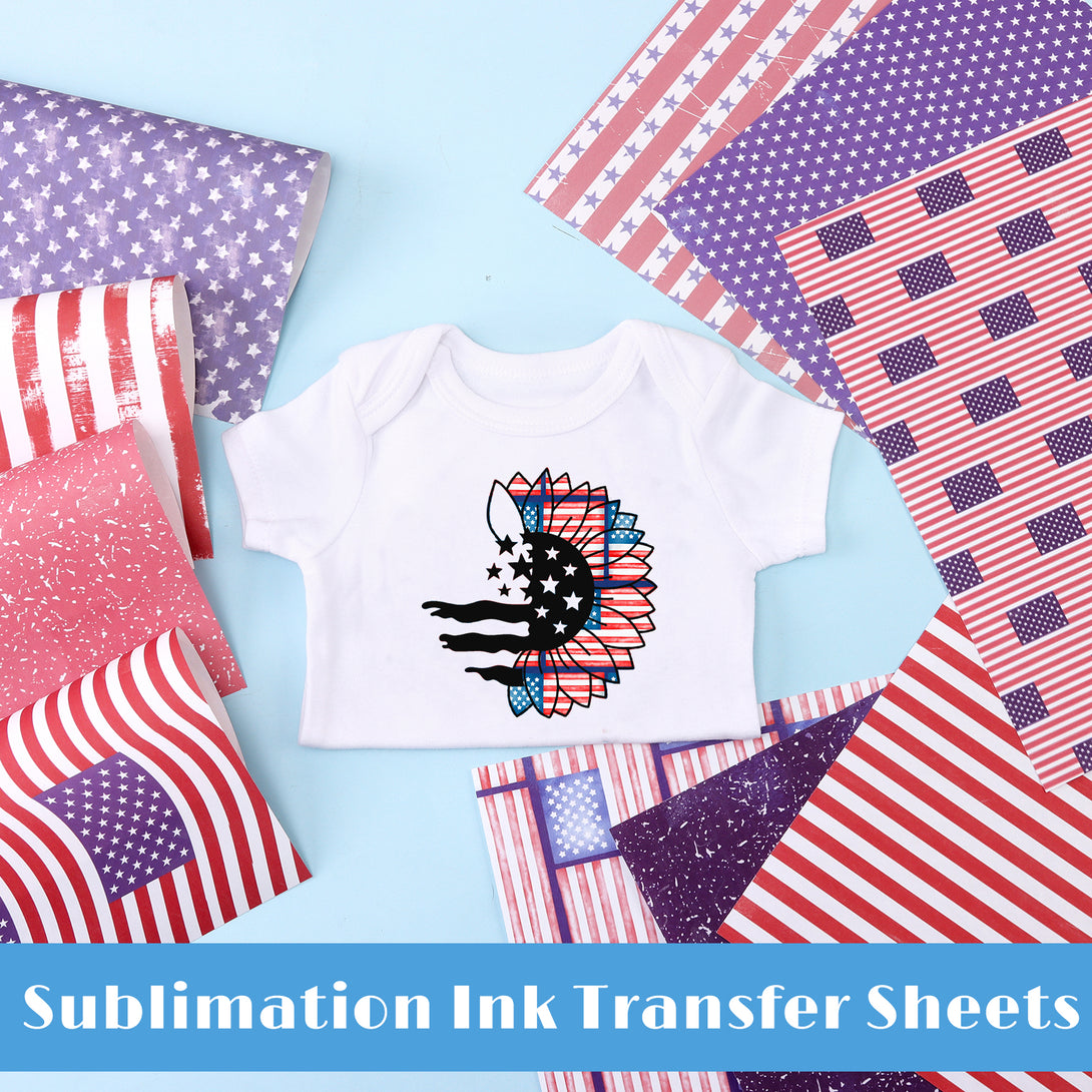 Tintnut American Flag Pattern Sublimation Transfer Paper,American Flag Sublimation Pattern Transfer Sheets Compatible with ALL Machine and Easy to use Transfer.