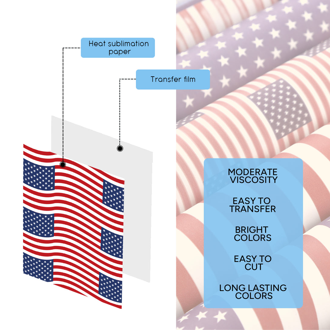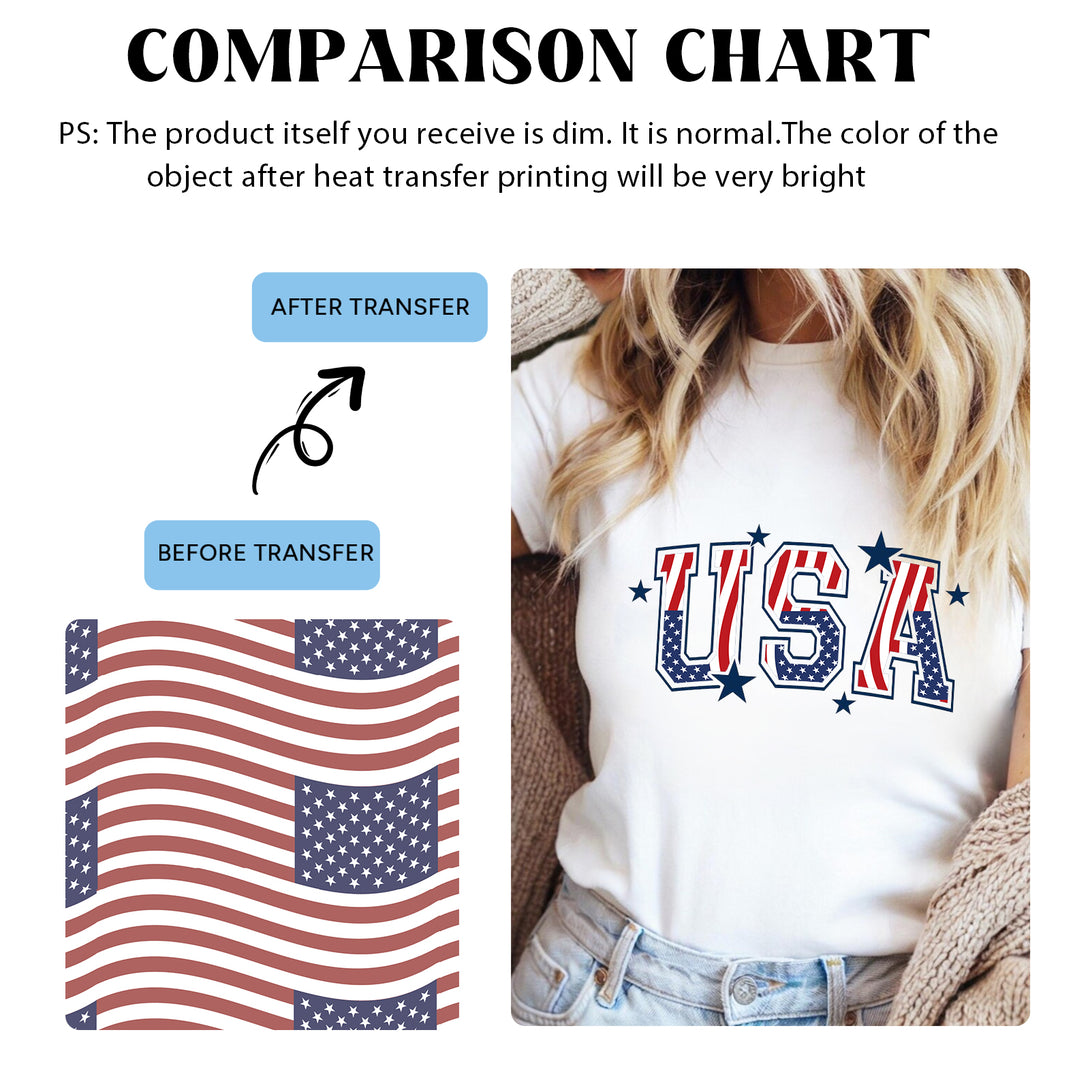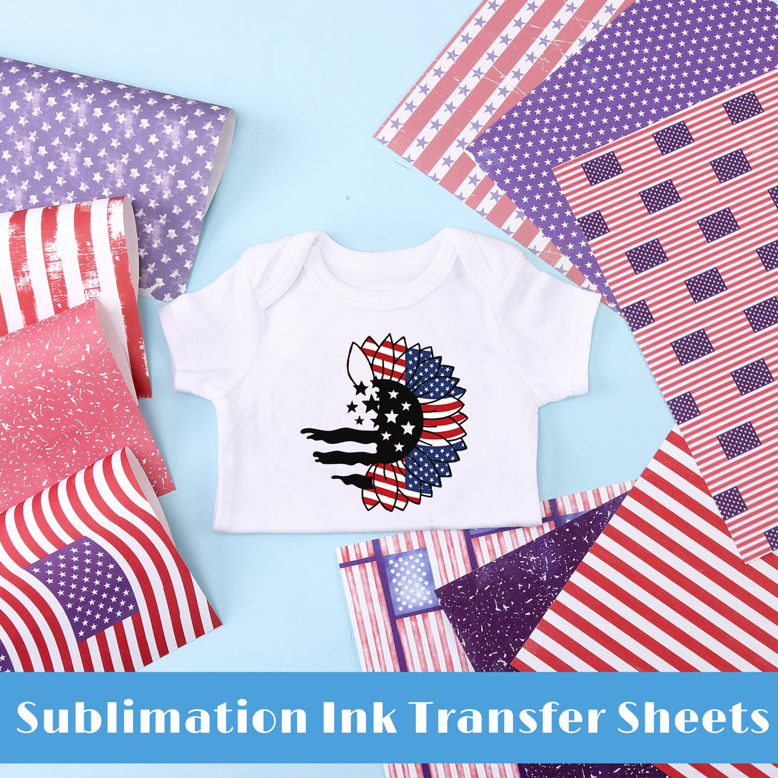 Tintnut American Flag Pattern Sublimation Transfer Paper,American Flag Sublimation Pattern Transfer Sheets Compatible with ALL Machine and Easy to use Weed.