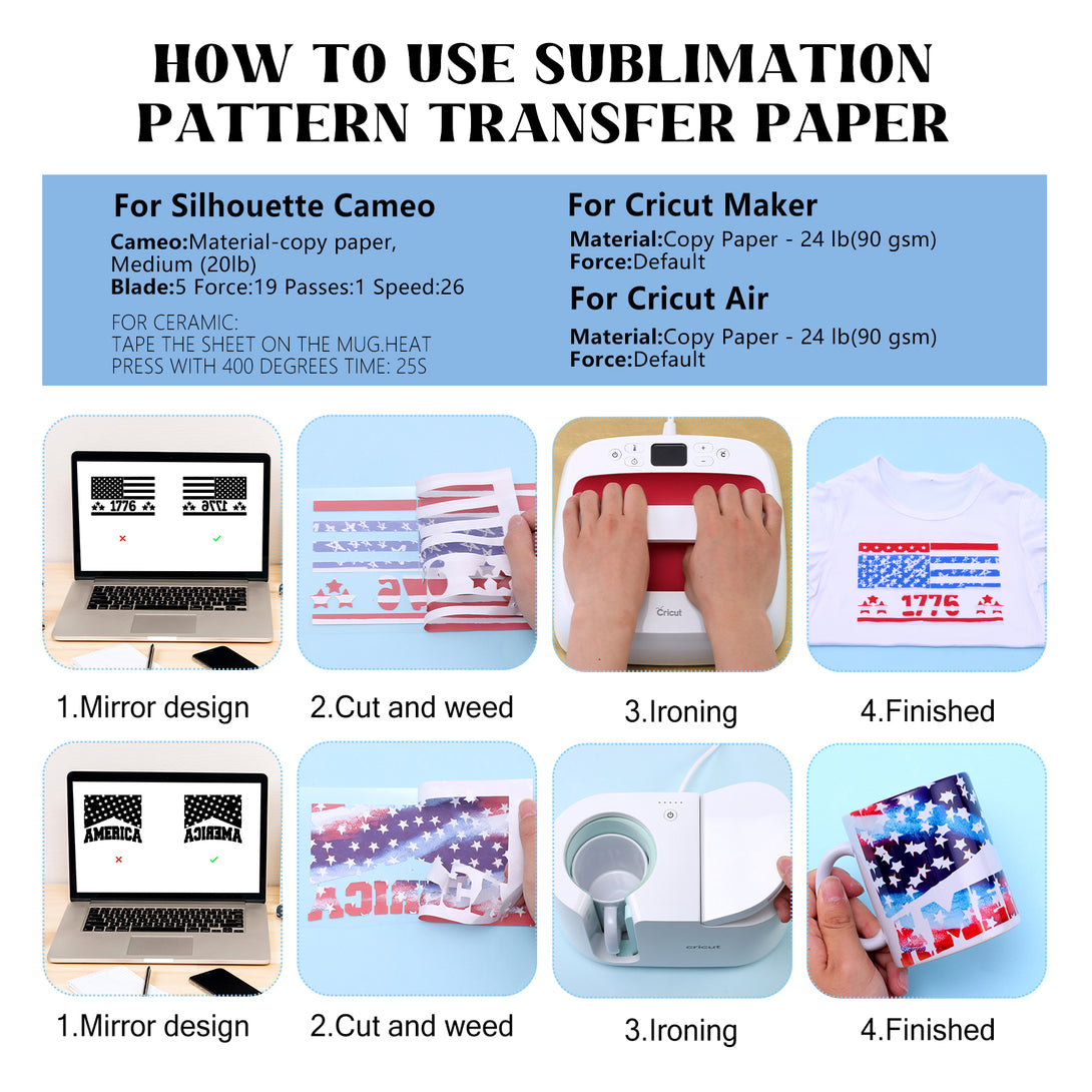 - 【Easy to Cut and Transfer】Our sublimation transfer sheets can easily weed and transfer your design and perfectly suited most machine.The most important,our product are convenience that is simple and easy to transfer and use.
