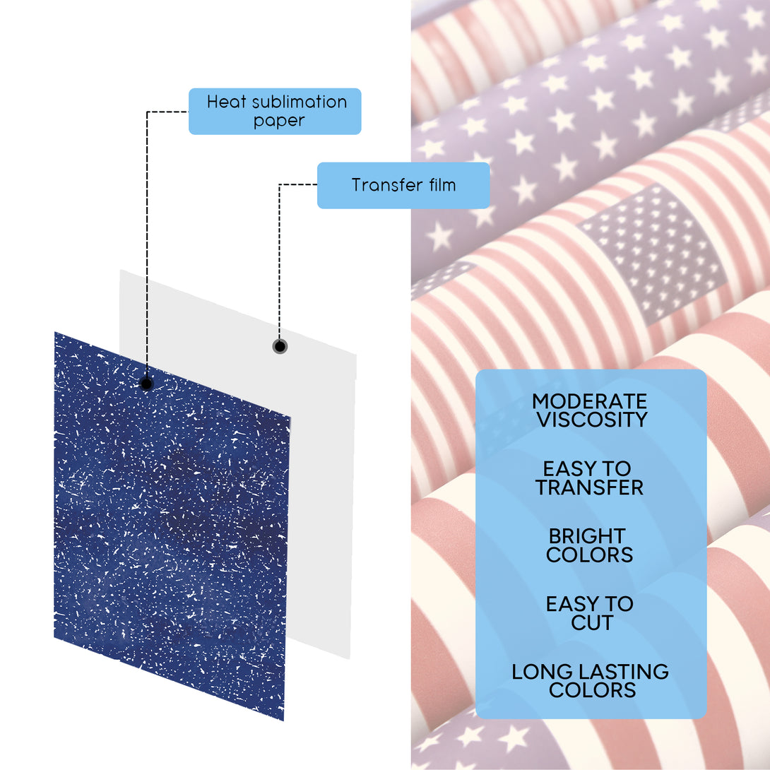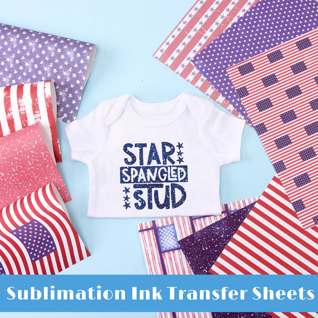 Tintnut American Flag Pattern Sublimation Transfer Paper,Sublimation Ink Transfer Sheets Compatible with ALL Machine and Easy to use Weed.