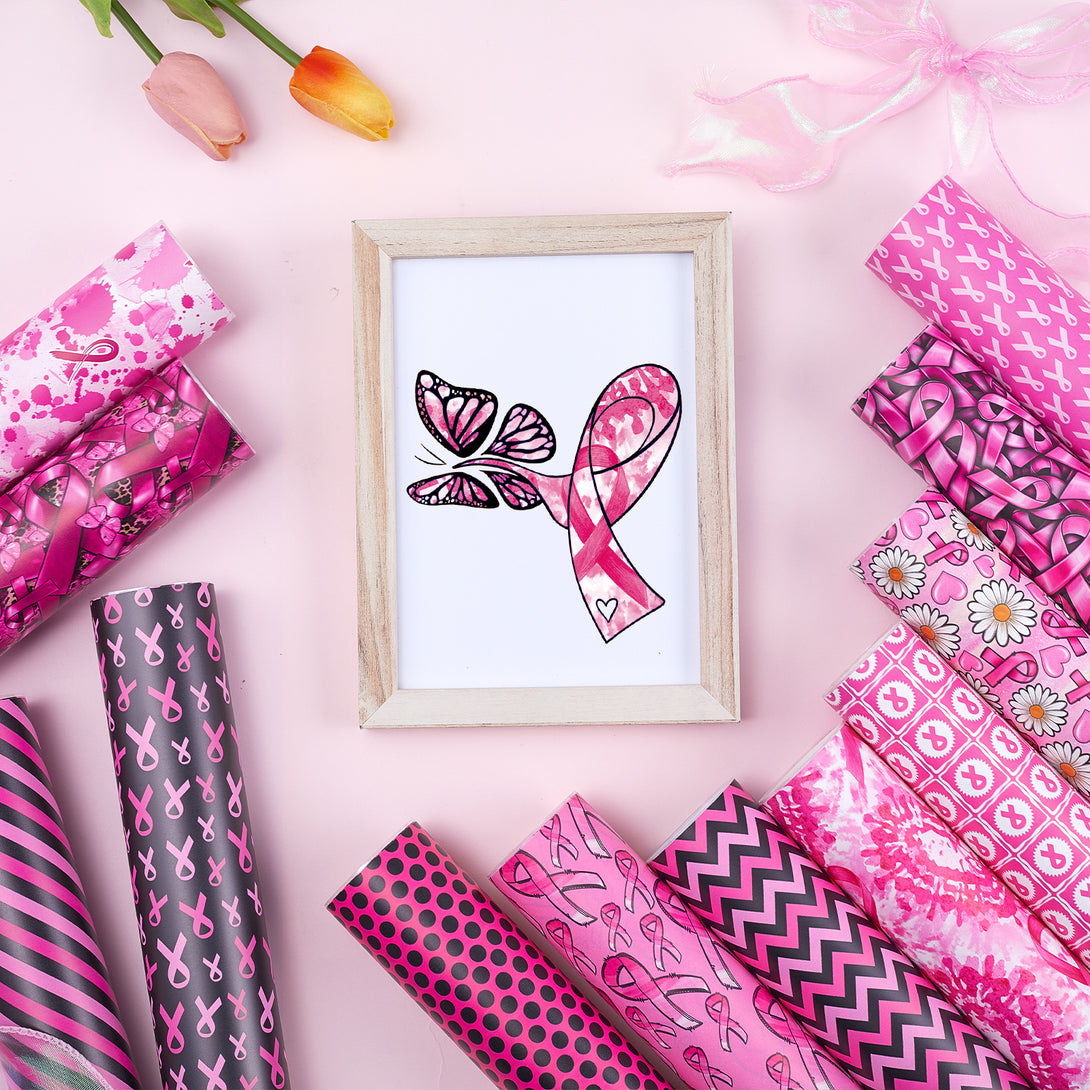 Tintnut Black Pink Permanent Adhesive Vinyl,Pink Premanent Vinyl,Pink Ribbon for Mugs,Waterproof Vinyl for Home Decor Self Sticker