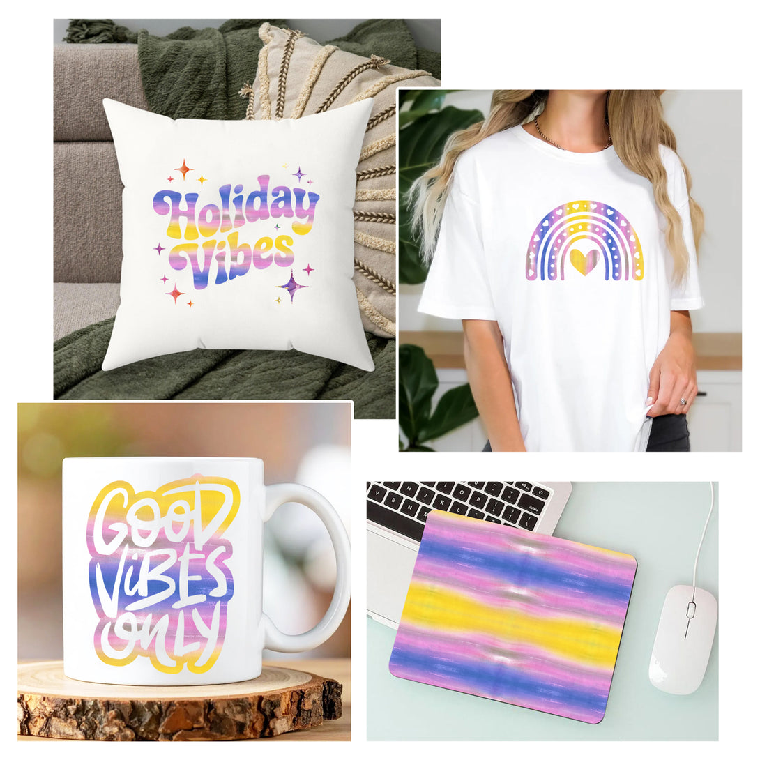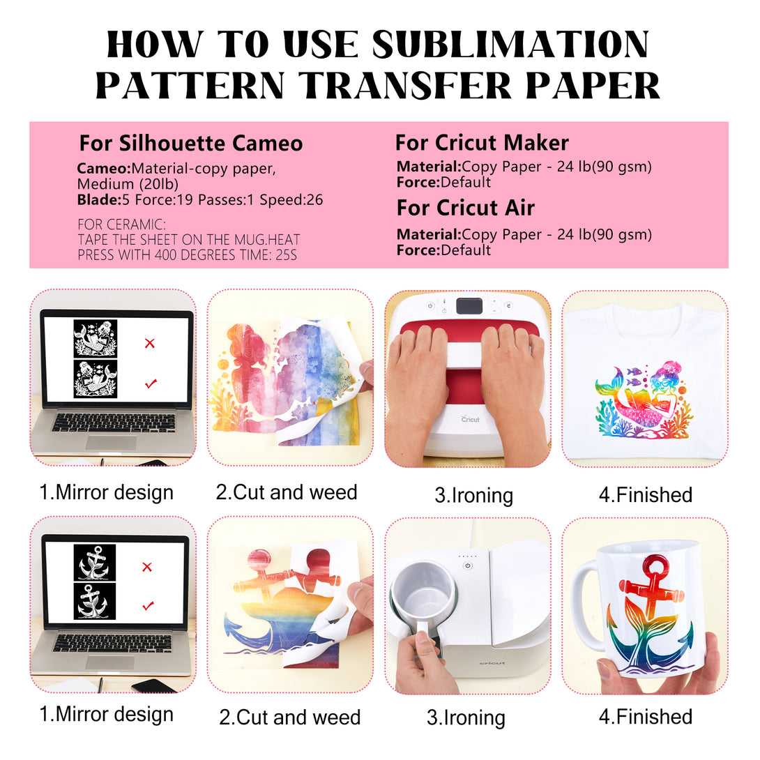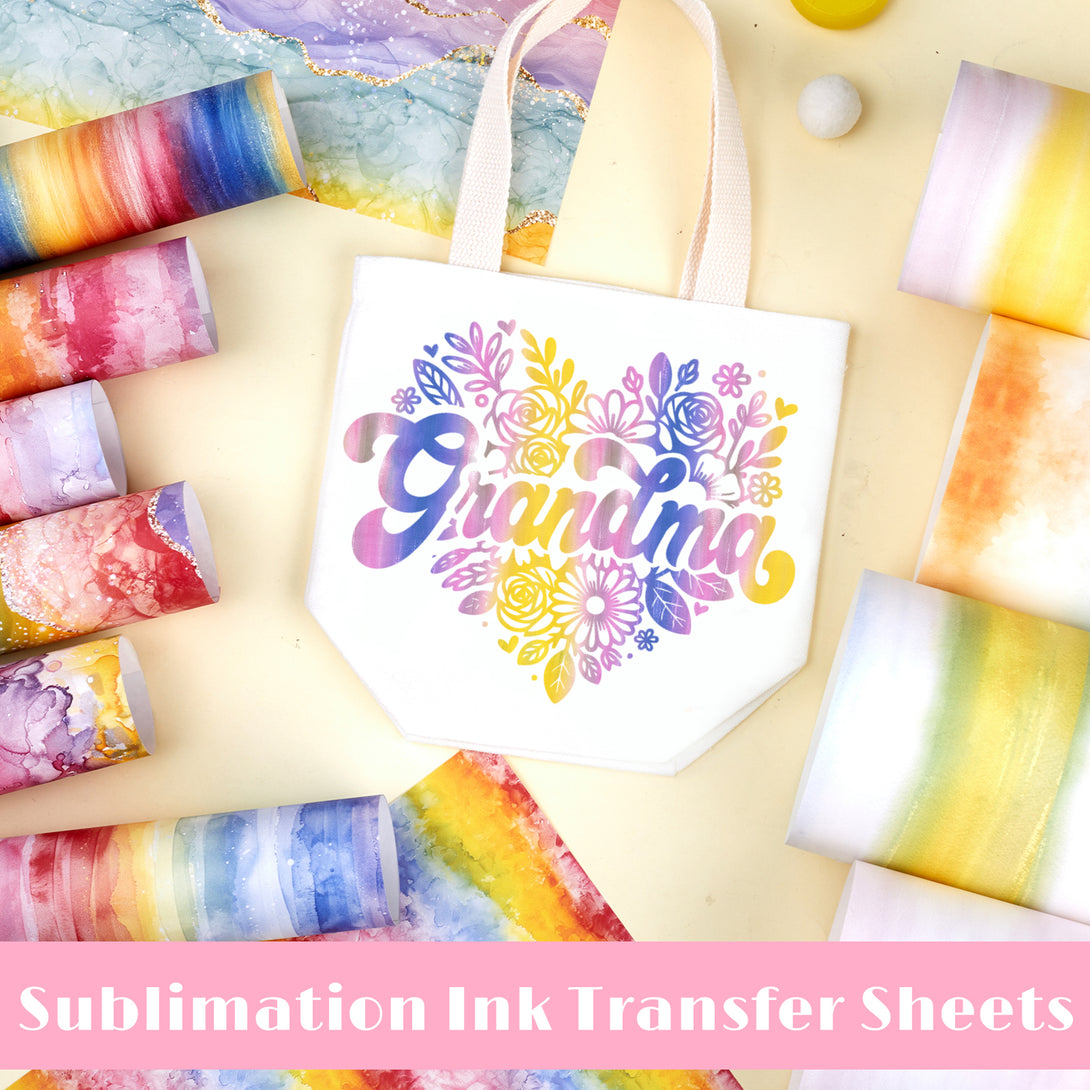 Tintnut Blue Purple Gradient Rainbow Watercolor Pattern Sublimation Transfer Paper,Sublimation Transfer Sheets Compatible with Cricut for DIY Mugs,T-Shirts and Easy to use Weed.