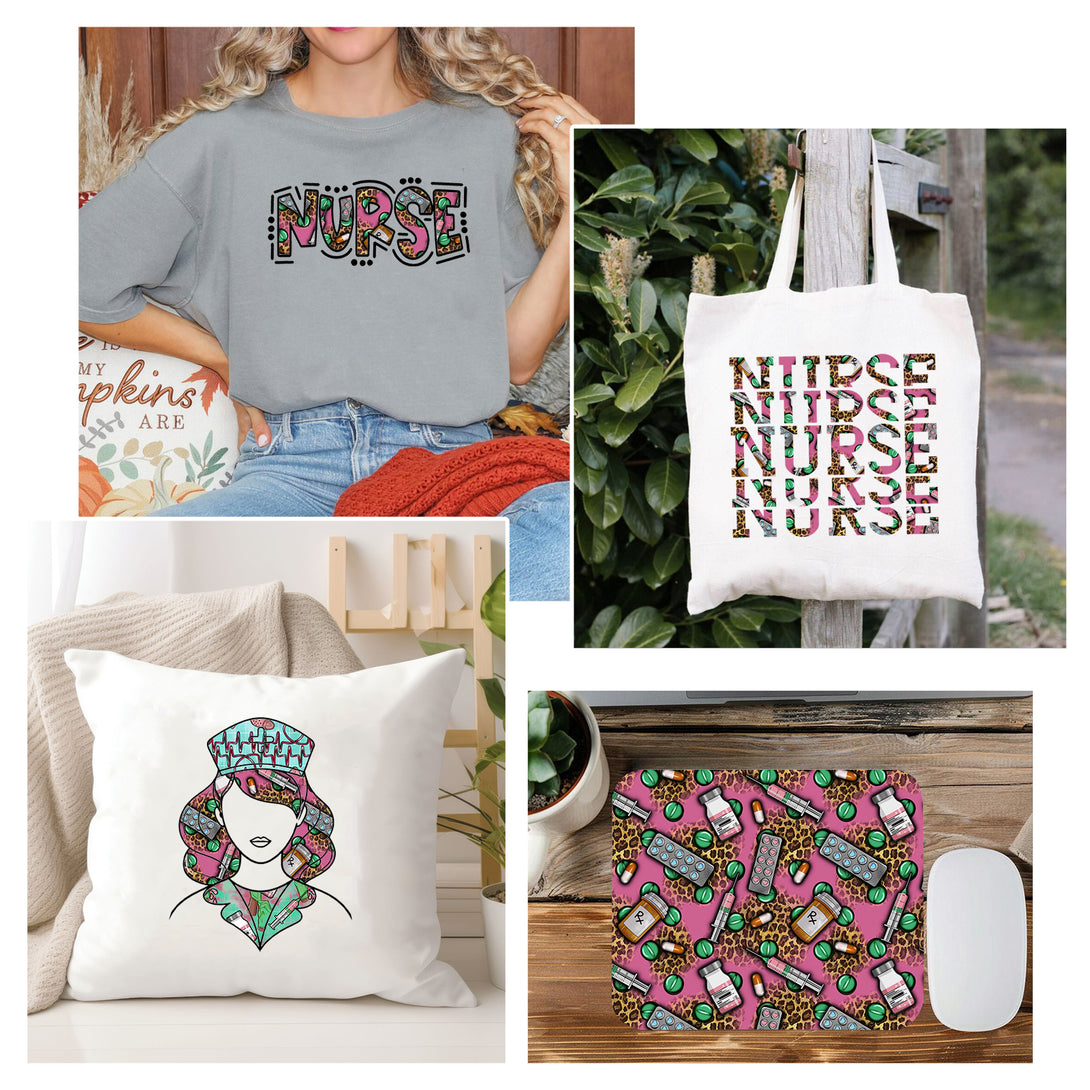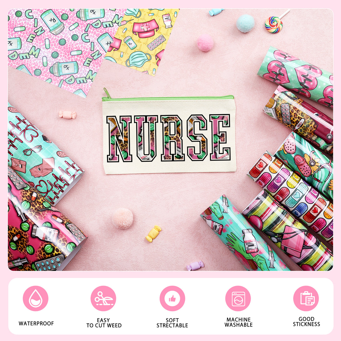 Tintnut Nurses Day Heat Transfer Vinyl Pink Color HTV Patterned HTV for Fabric HTV Vinyl Iron on Vinyl for T-Shirts DIY