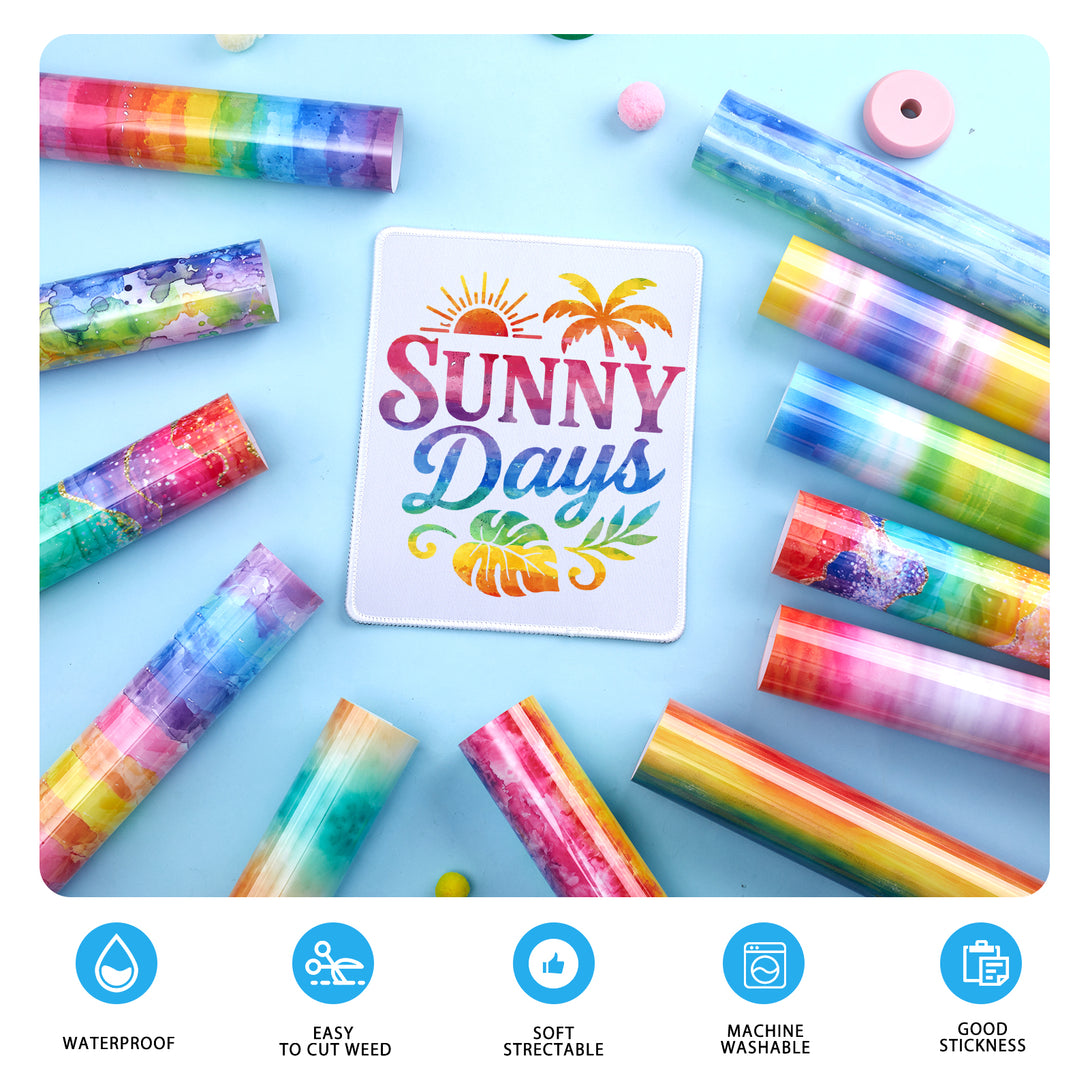 Tintnut Colorful Bright Rainbow Heat Transfer Vinyl Patterned HTV for Fabric Iron on Vinyl for T-Shirts Clothing