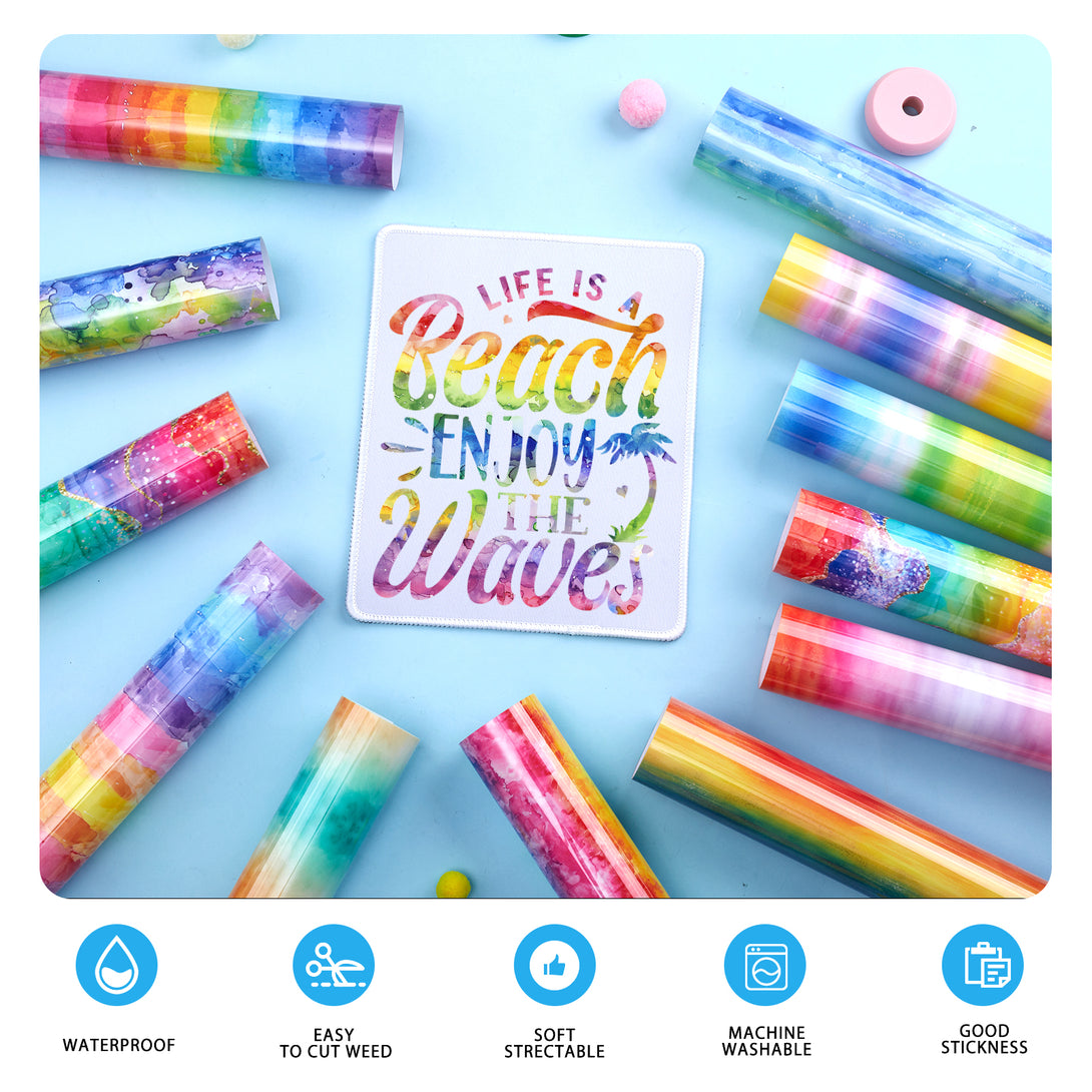 Tintnut Colorful Chameleon Rainbow Gradient Heat Transfer Vinyl Patterned HTV for Fabric Iron on Vinyl for T-Shirts Clothing