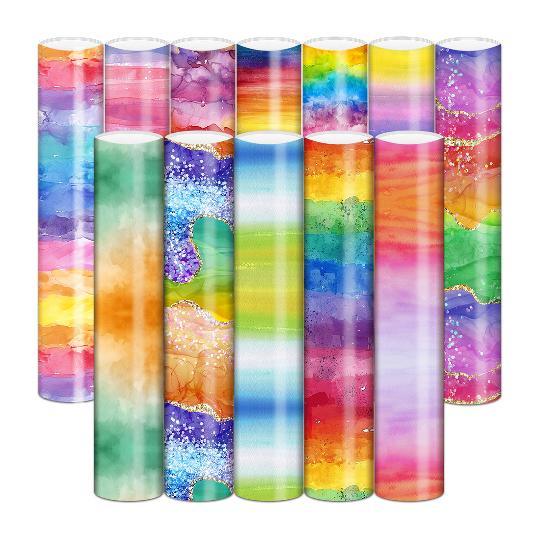 Tintnut Colorful Chameleon Rainbow Gradient Watercolor Permanent Adhesive Vinyl Sheets Multicolor Pattern Self Sticker Water proofing Vinyl for DIY