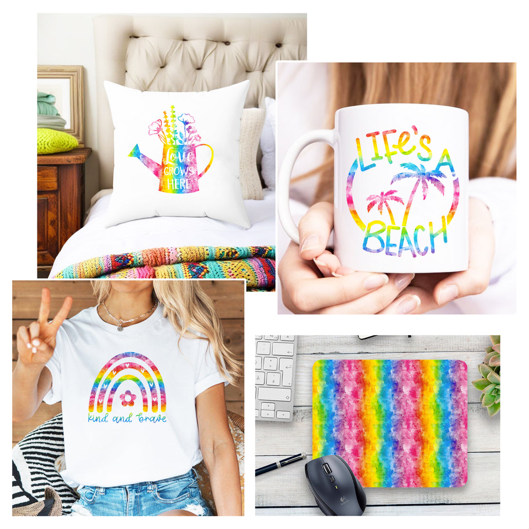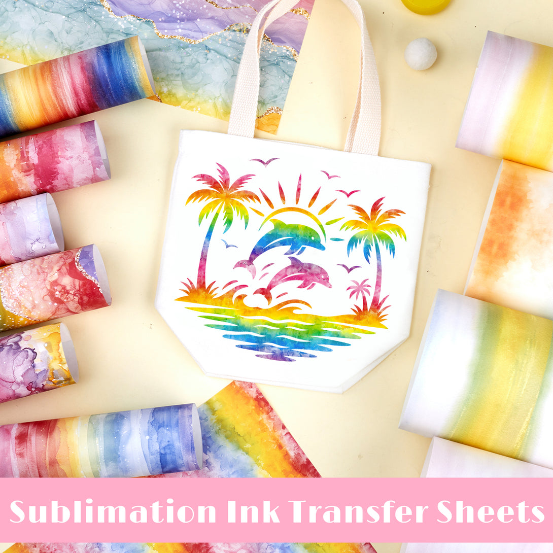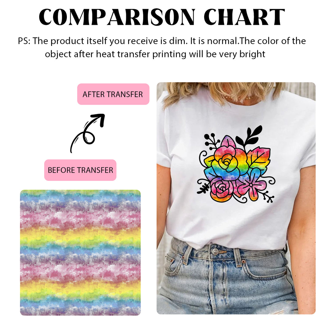 Tintnut Colorful Iridescent Rainbow Watercolor Pattern Sublimation Transfer Paper,Sublimation Transfer Sheets Compatible with Cricut for DIY Mugs,T-Shirts and Easy to use Weed.