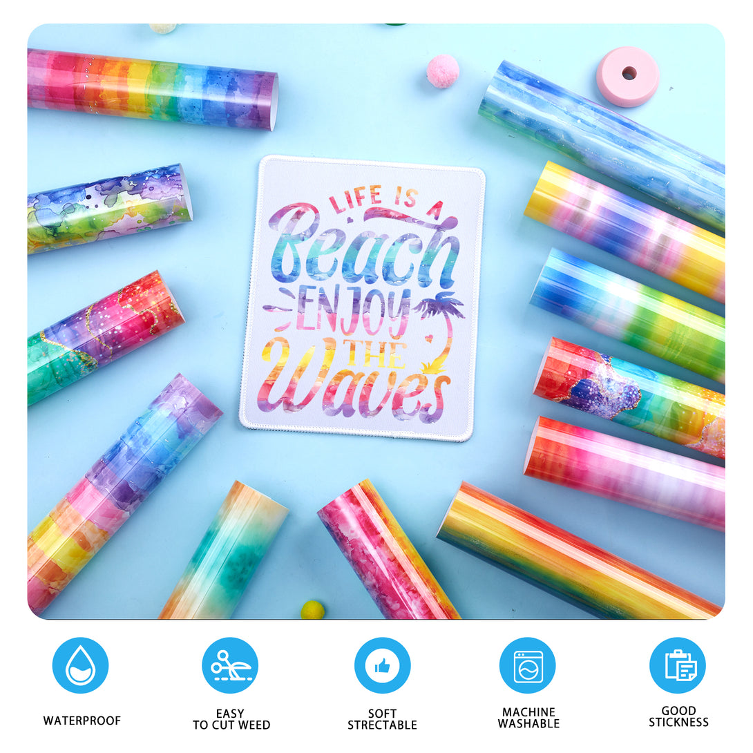 Tintnut Colorful Rainbow Gradient Heat Transfer Vinyl Patterned HTV for Fabric Iron on Vinyl for T-Shirts Clothing