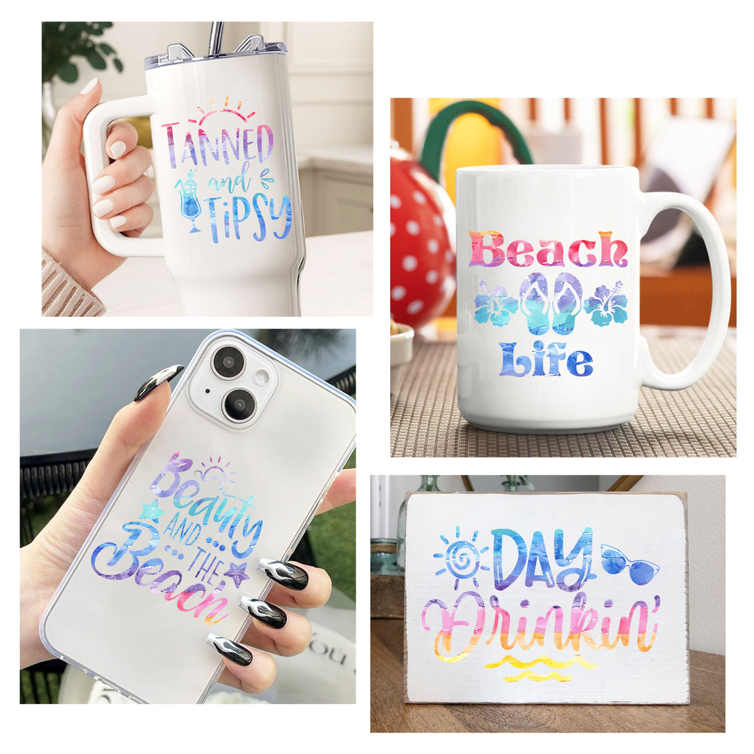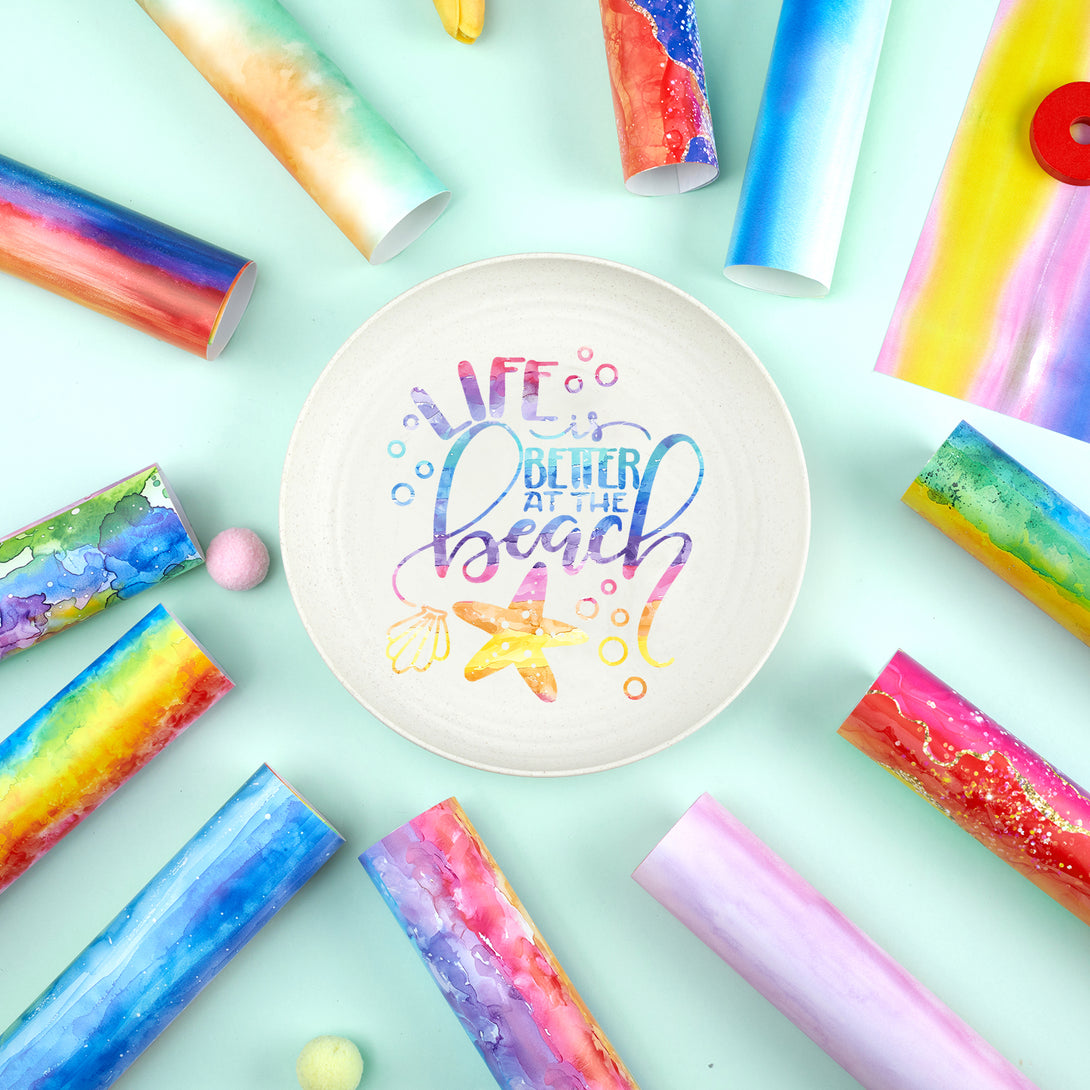 Tintnut Colorful Rainbow Gradient Watercolor Permanent Adhesive Vinyl Sheets Multicolor Pattern Self Sticker Water proofing Vinyl for DIY