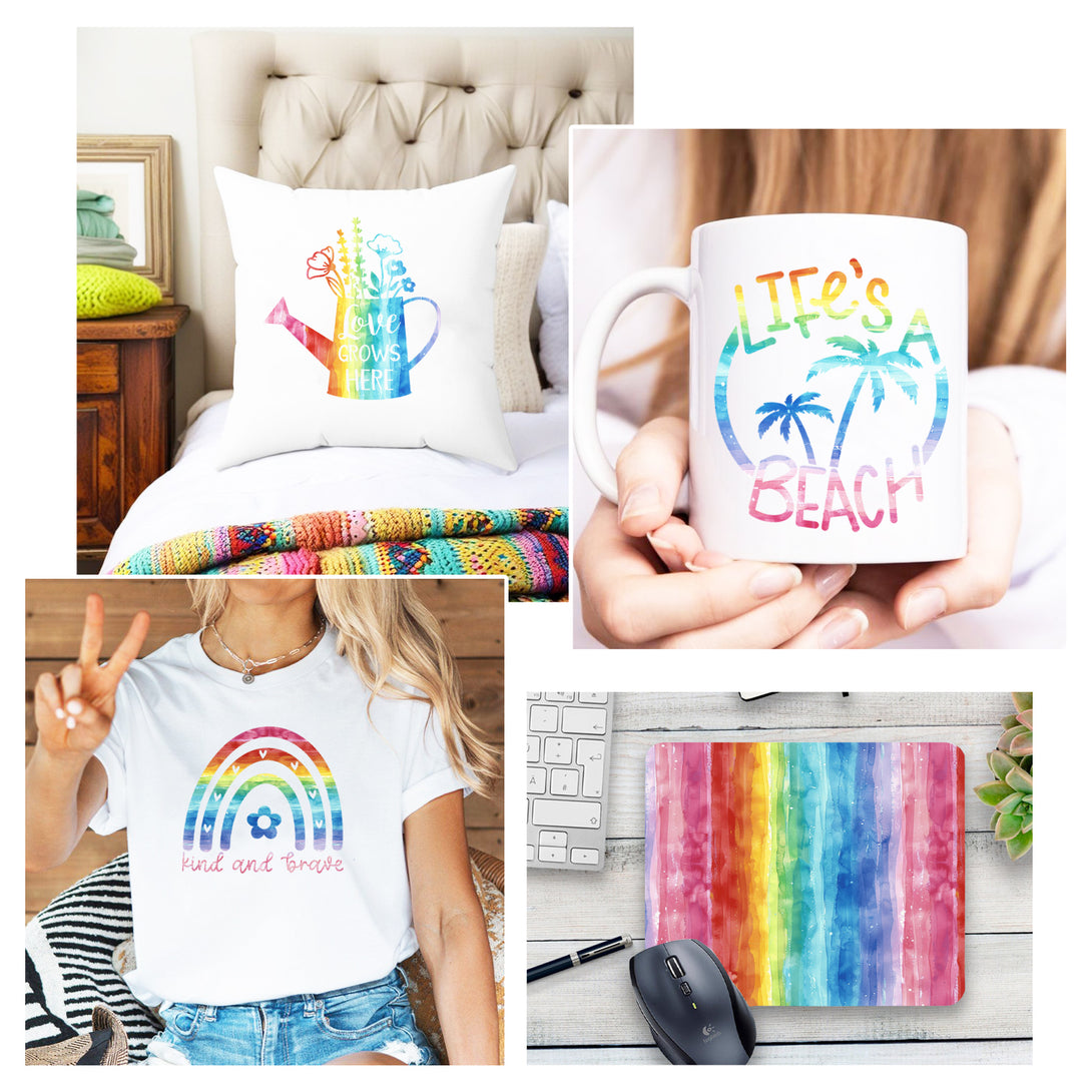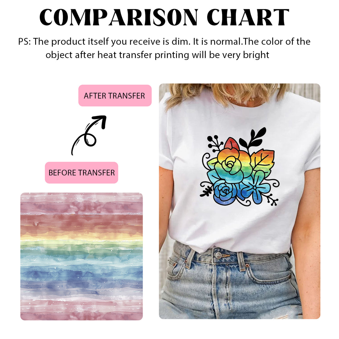 Tintnut Colorful Vibrant Rainbow Watercolor Pattern Sublimation Transfer Paper,Sublimation Transfer Sheets Compatible with Cricut for DIY Mugs,T-Shirts and Easy to use Weed.