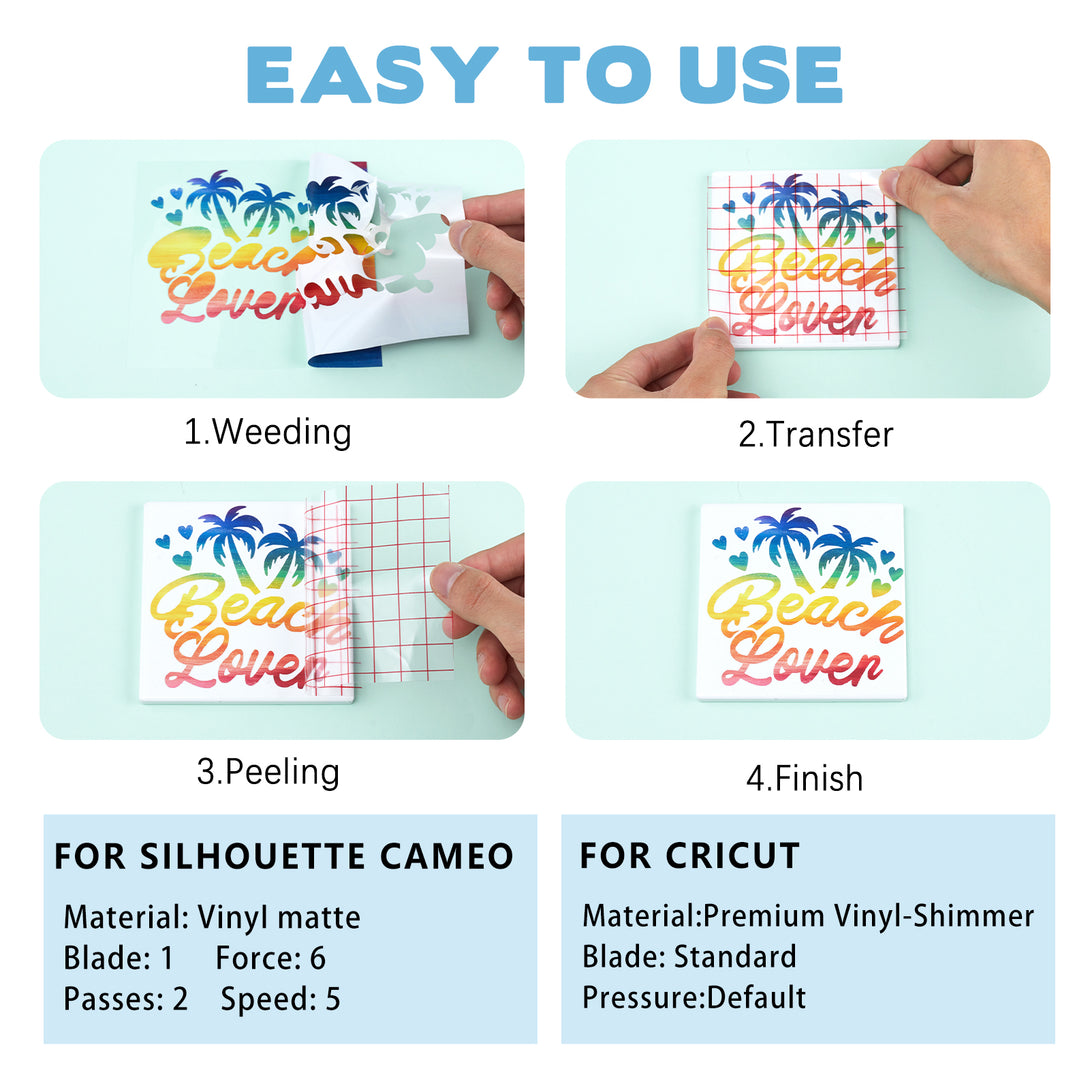 【FRIENDLY TO USE】This heat transfer vinyl is easy to cut on any cutting machines. It is aslo design to be easy weed. You can heat firmly with heat press machine and also normal iron to transfer.