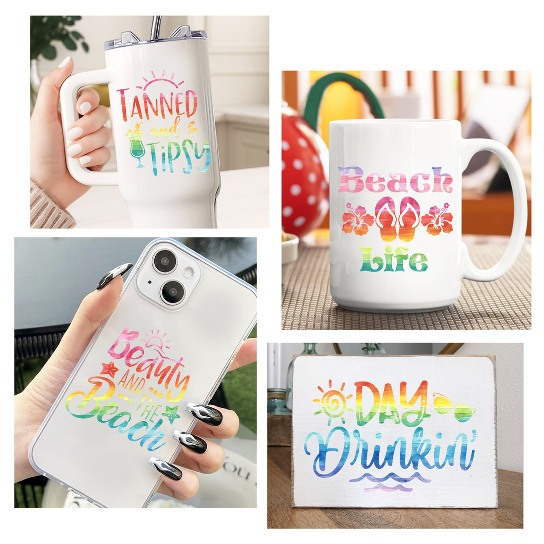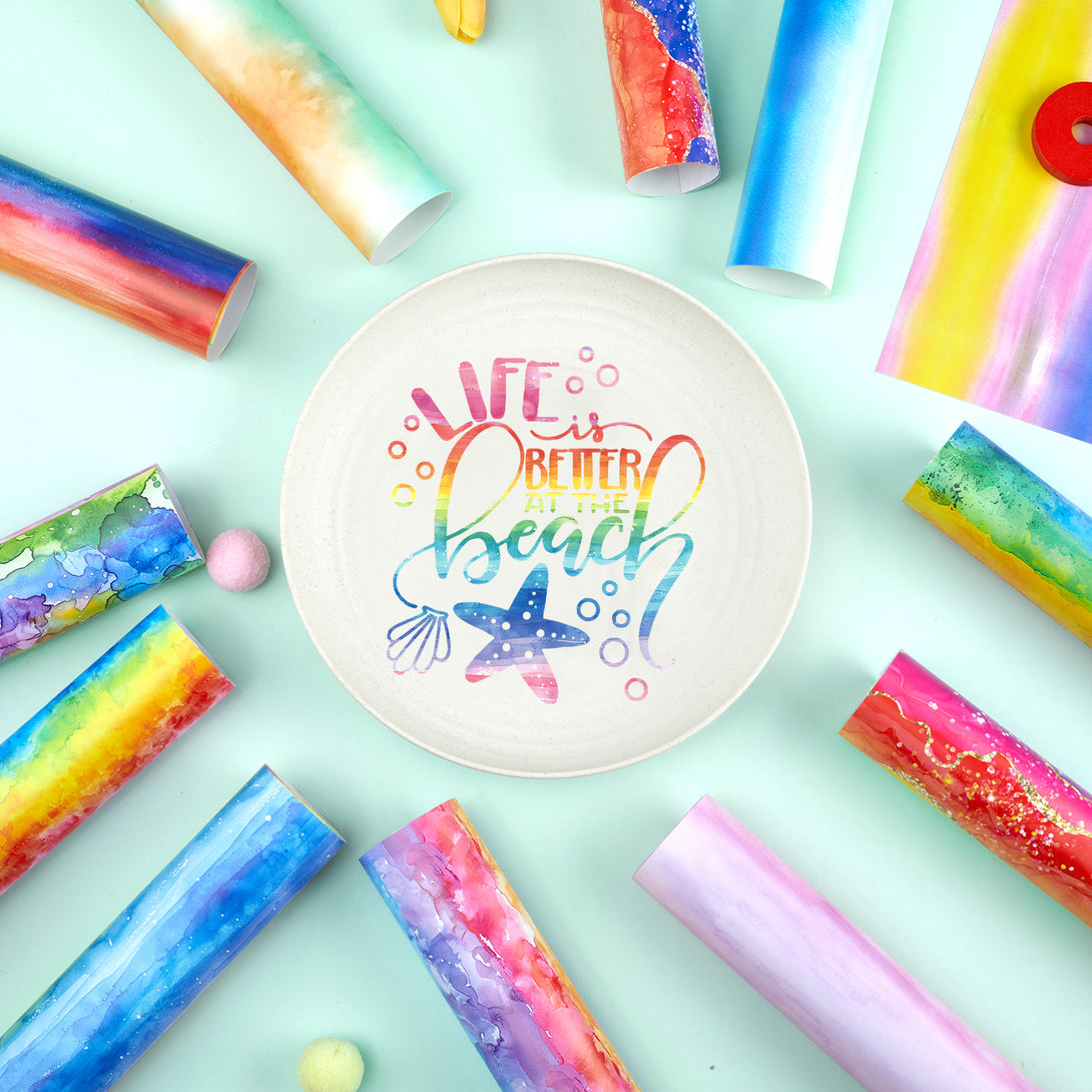 Tintnut Colorful Vibrant Rainbow Watercolor Permanent Adhesive Vinyl Sheets Multicolor Pattern Self Sticker Water proofing Vinyl for DIY
