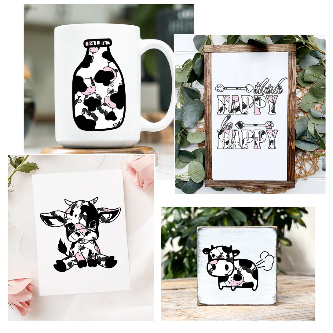 Tintnut Cow Patterned Permanent Vinyl,Cow Permanent Adhesive Vinyl for Cutting Machine,Self Sticker Water Proofing Vinyl