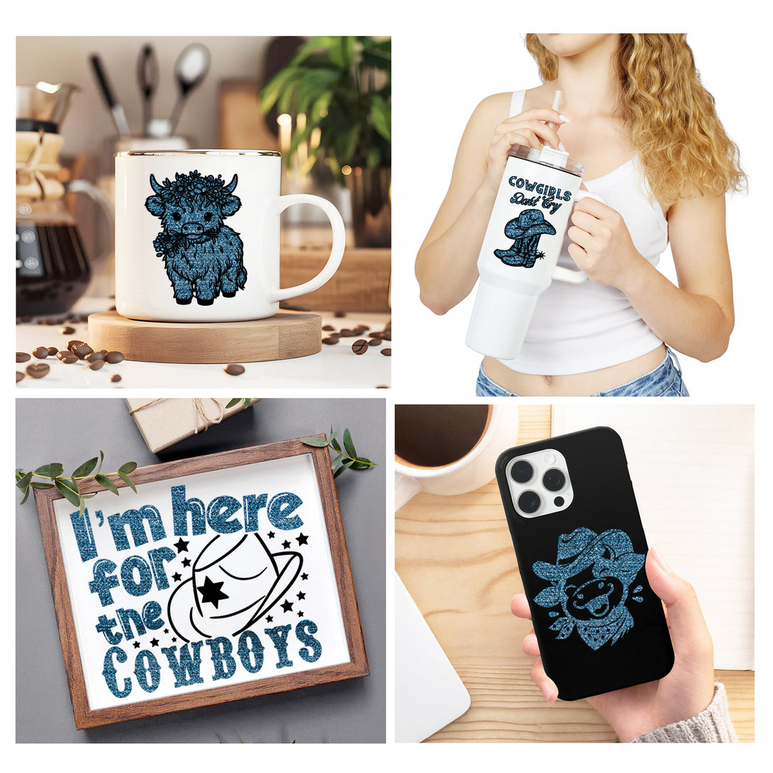 Tintnut Cowboy Patterned Permanent Adhesive Viny,Blue Permanent Vinyl,Self Sticker Water proofing Vinyl Compatible with Cricut Or Silhouette