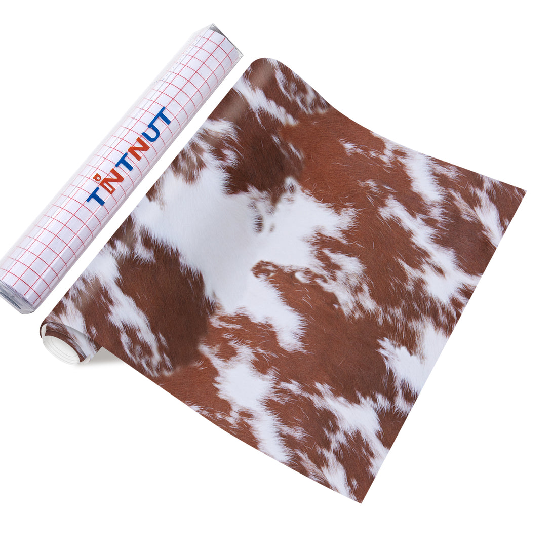 Tintnut Cowhide Permanent Vinyl, Animal Print Vinyl, Cow Print Adhesive Vinyl, Permanent Outdoor Vinyl for Decor Sticker, Self Sticker Water proofing Vinyl