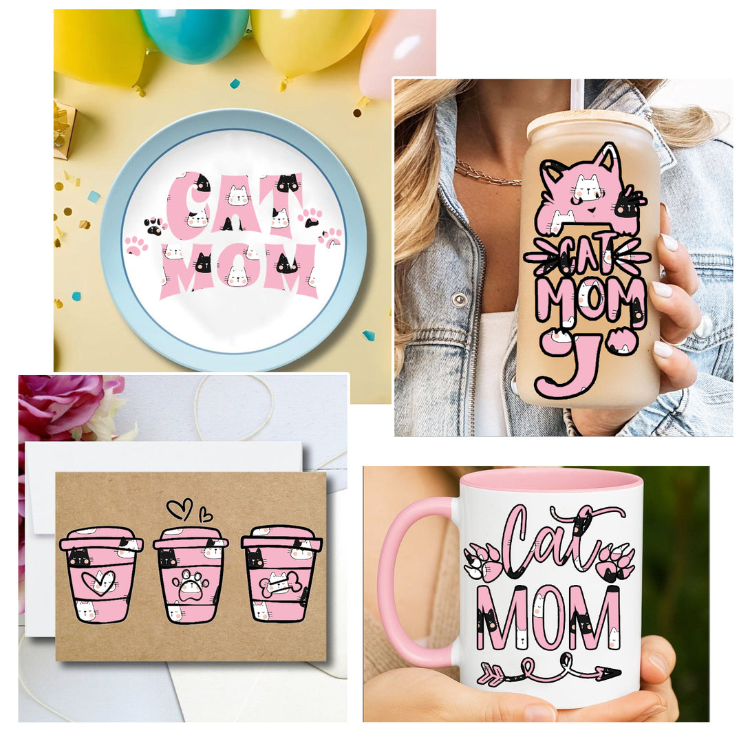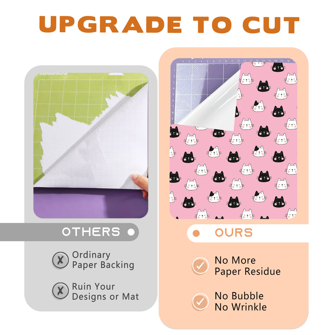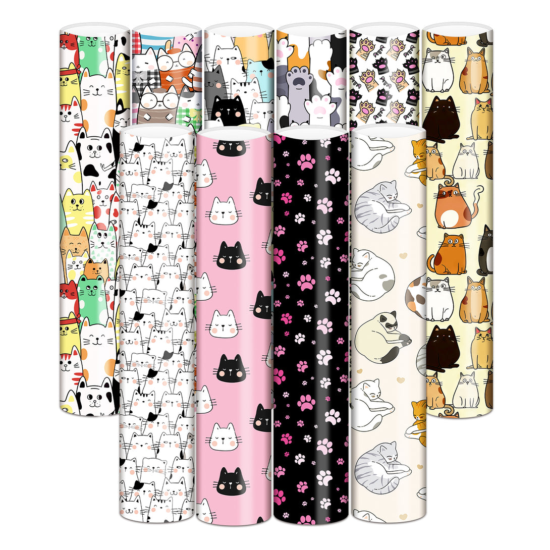 Tintnut Cute Colorful Cat Patterned Permanent Adhesive Vinyl,Colored Cat Permanent Vinyl for Cutting Machine,Self Sticker Water proofing Vinyl