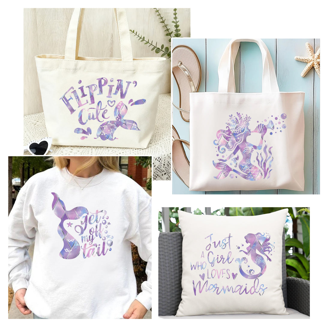 Tintnut Deep-sea Mermaid Heat Transfer Vinyl Dreamy Diamond-shaped Purple Gradient Patterned HTV Iron on Vinyl for T-Shirts, Clothing & Bags