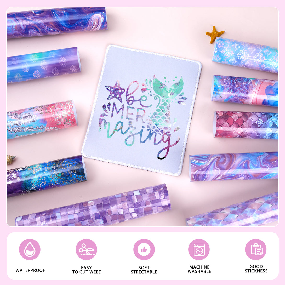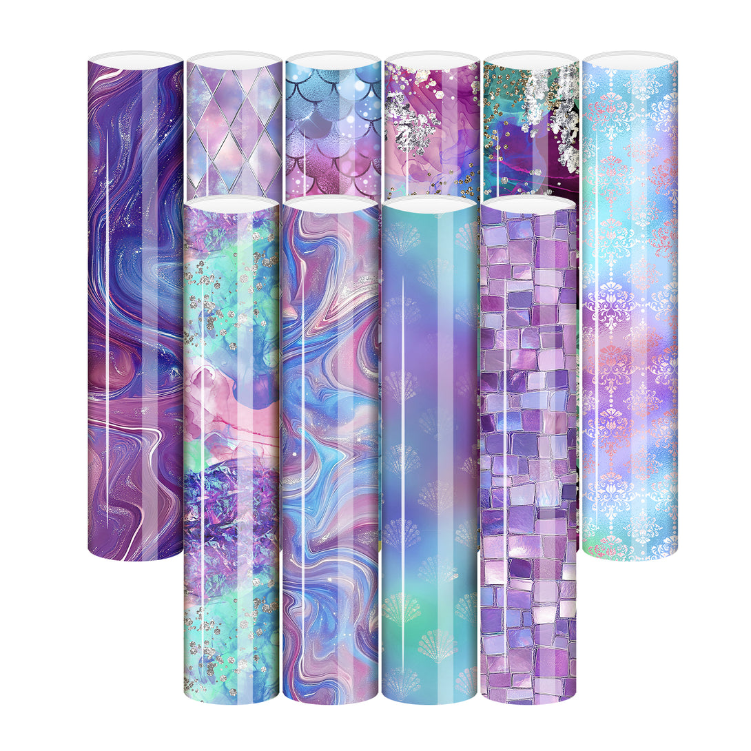 Tintnut Deep-sea Mermaid Heat Transfer Vinyl Dreamy Purple and Green Gradient Patterned HTV Iron on Vinyl for T-Shirts, Clothing & Bags