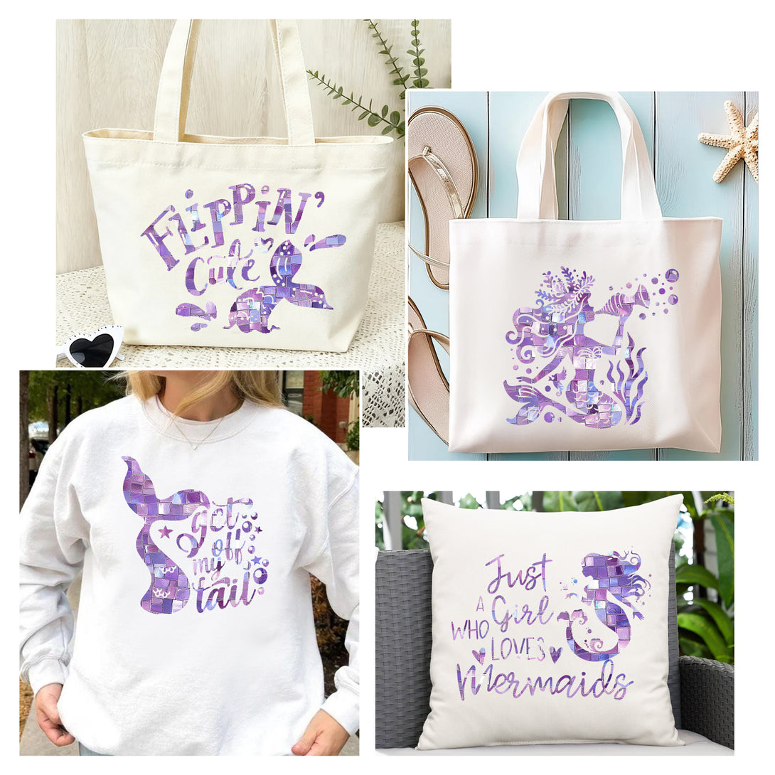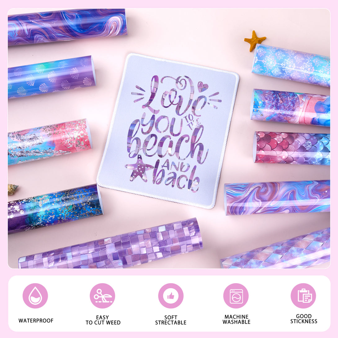Tintnut Deep-sea Mermaid Heat Transfer Vinyl Dreamy Square-shaped Purple Gradient Patterned HTV Iron on Vinyl for T-Shirts, Clothing & Bags