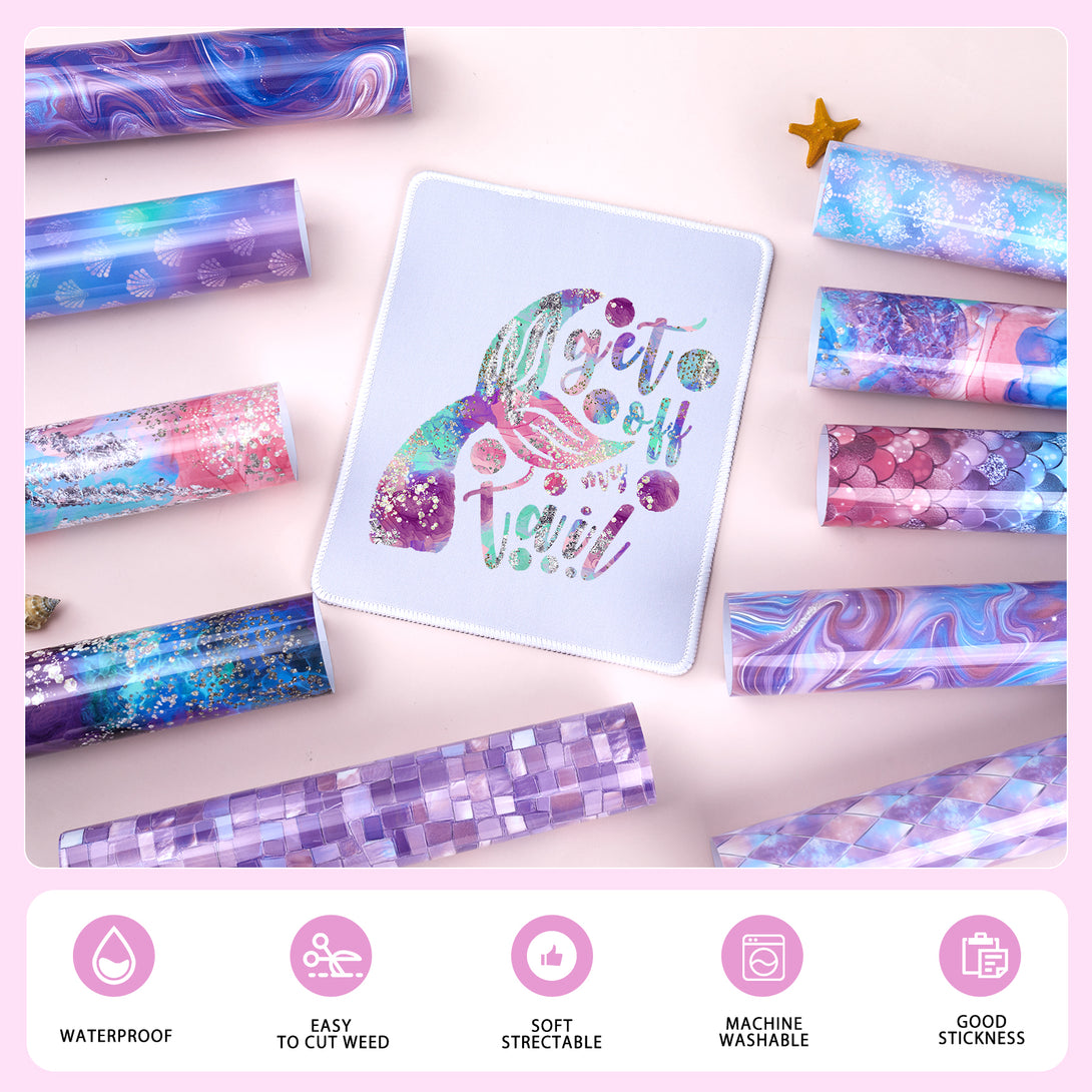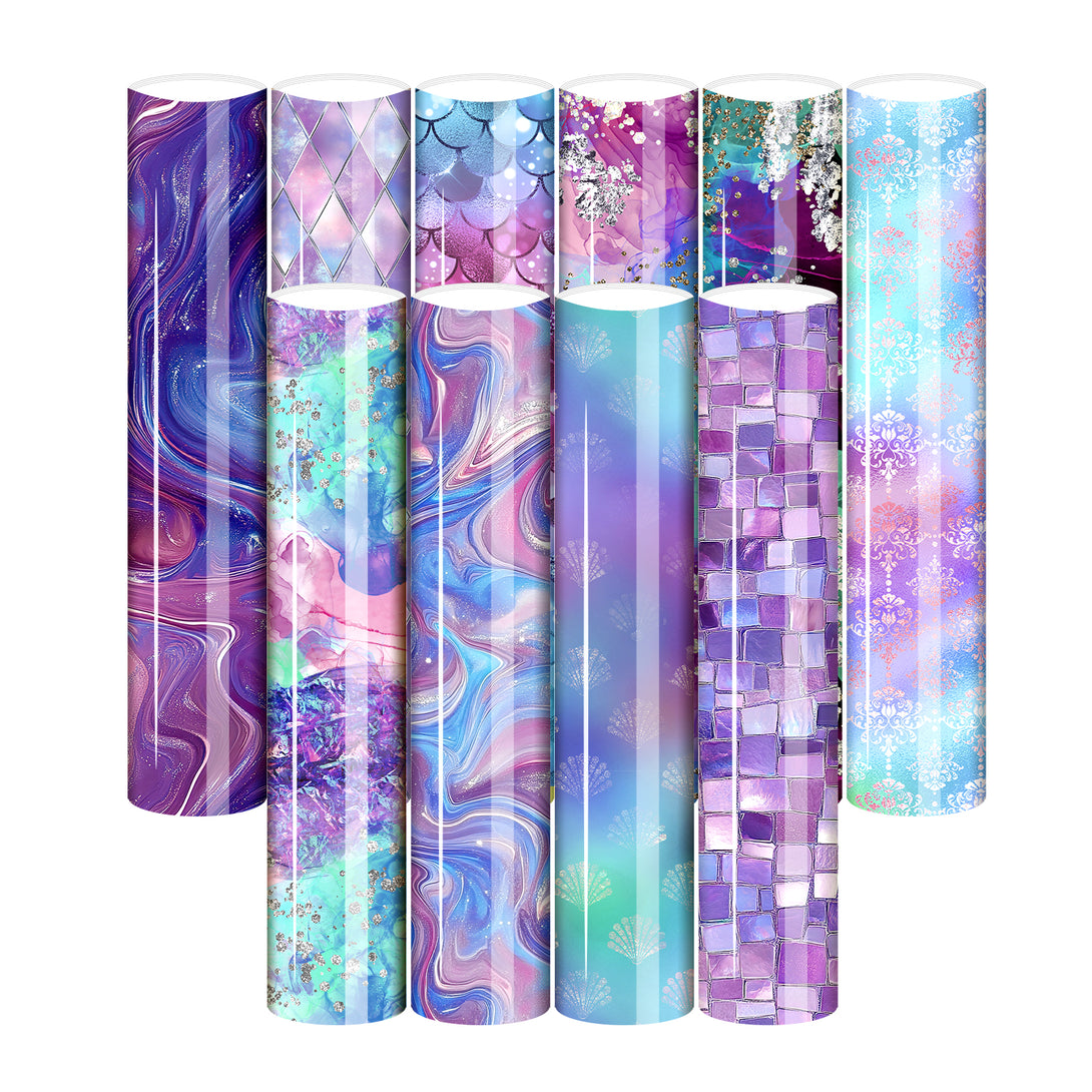 Tintnut Deep-sea Mermaid Heat Transfer Vinyl Watercolor Art Colorful Tie Dye Block Gradient Patterned HTV Iron on Vinyl for T-Shirts, Clothing & Bags