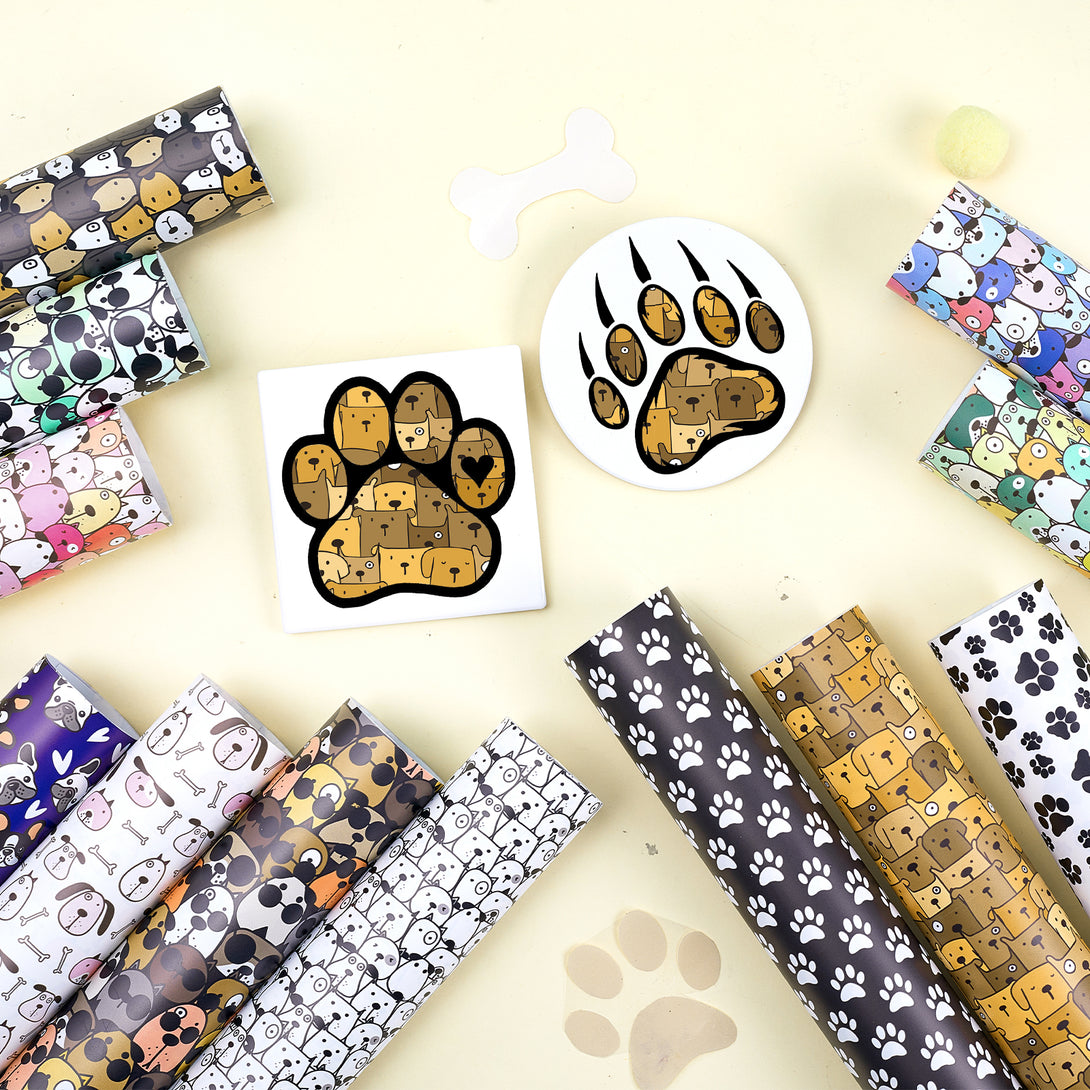 Tintnut Dog Patterned Permanent Vinyl,Cartoon Dog Permanent Adhesive Vinyl for Cutting Machine,Waterproof Vinyl for Home Decor Self Sticker