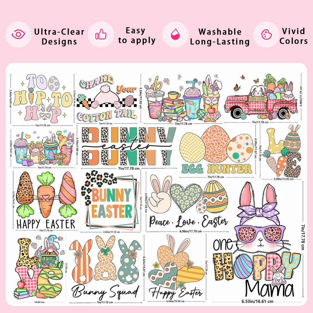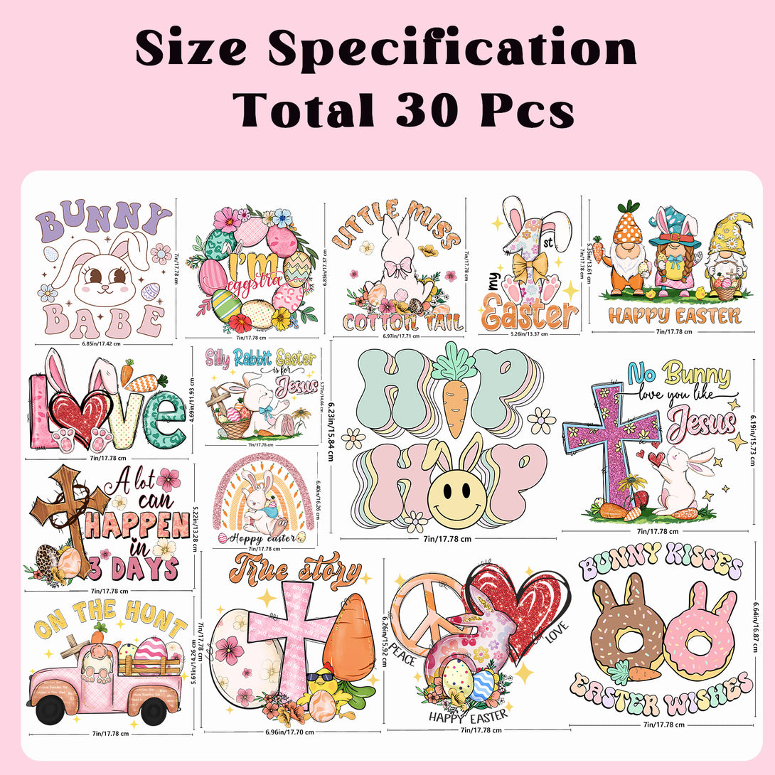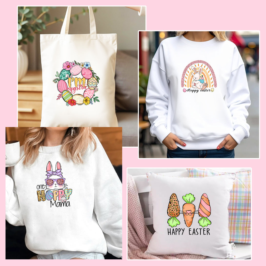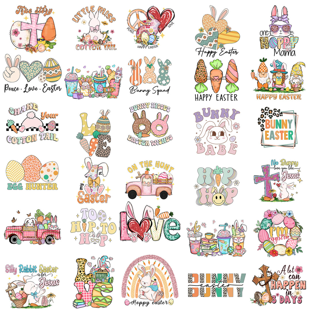 Tintnut Easter DTF Transfers Ready to Press Iron on Transfers-30 Sheets Bunny Egg Pattern Iron on Decals for T-Shirts Clothing Heat Transfer Iron on Stickers for Canvas Bag Design