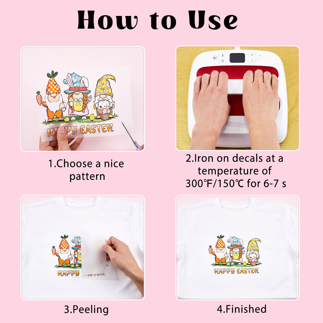 - [EASY OPERATION]1.Choose your favorite pattern to match freely 2.Preheating carrier for a smooth surface 3.Place the sticker on the carrier, refer to the operating instructions for temperature settings and time to heat, and finally remove the protective film,You'll get a craft of your choice