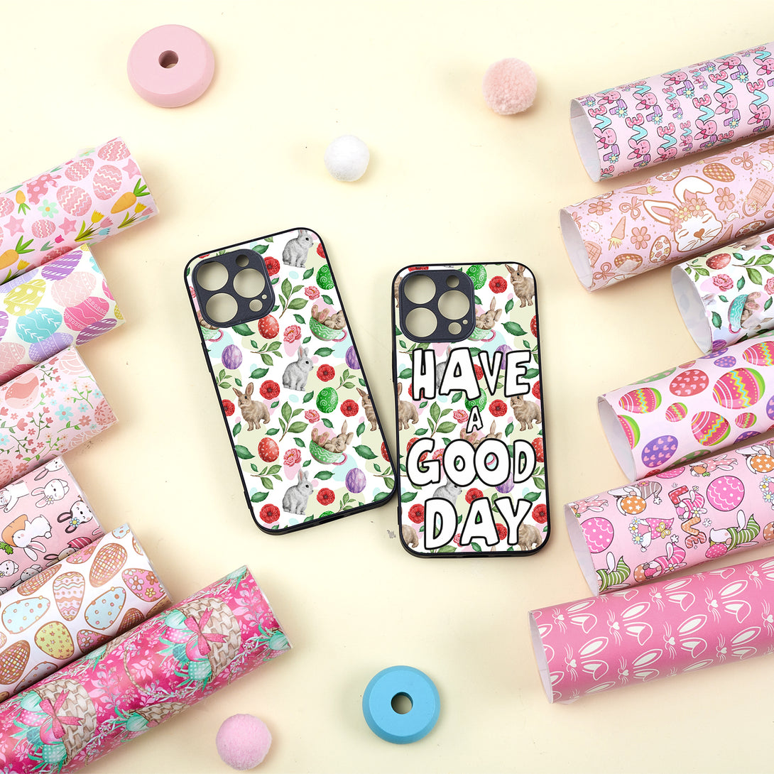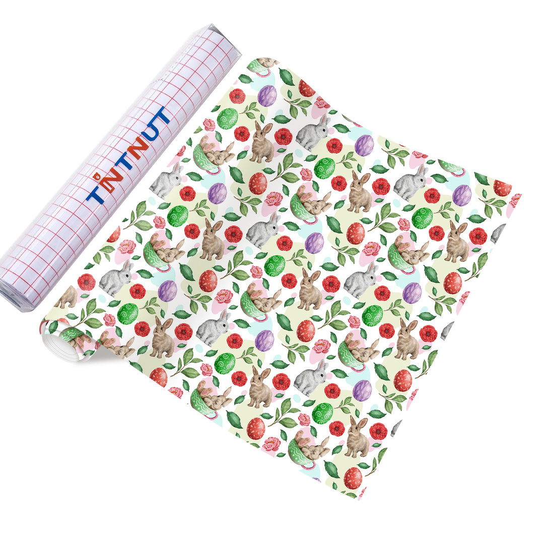 Tintnut Easter Egg Permanent Adhesive Vinyl, Spring Pastel Pattern Adhesive Vinyl, Pink Bunny Prints Vinyl, Outdoor for Decor Self Sticker