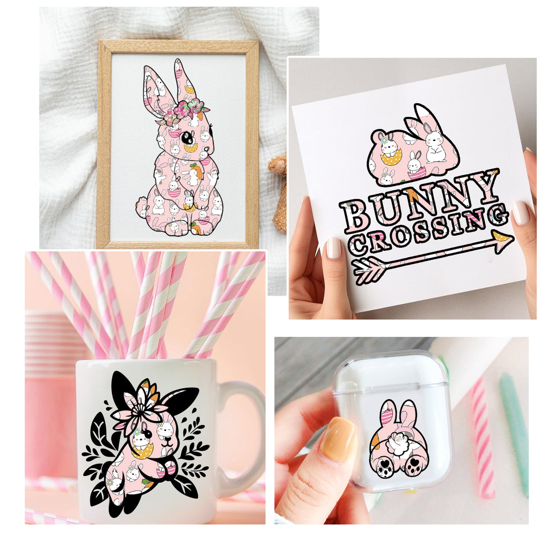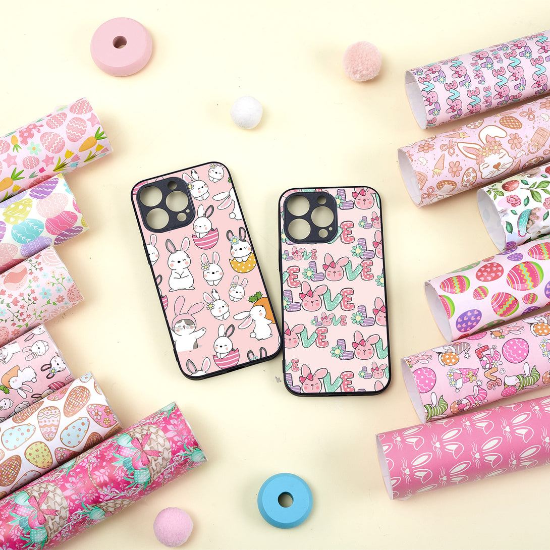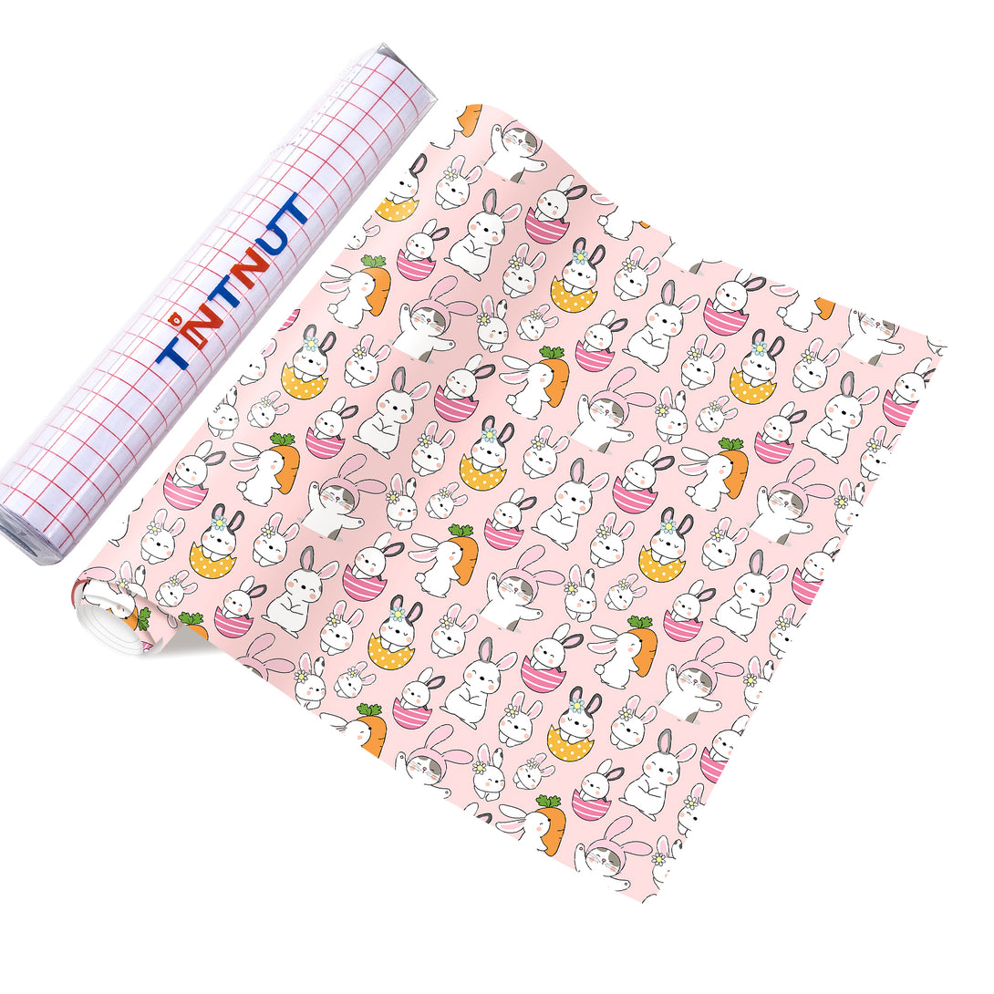 Tintnut Easter Egg Permanent Vinyl, Spring Pastel Pattern Adhesive, Pink Bunny Prints, Outdoor for Decor Self Sticker