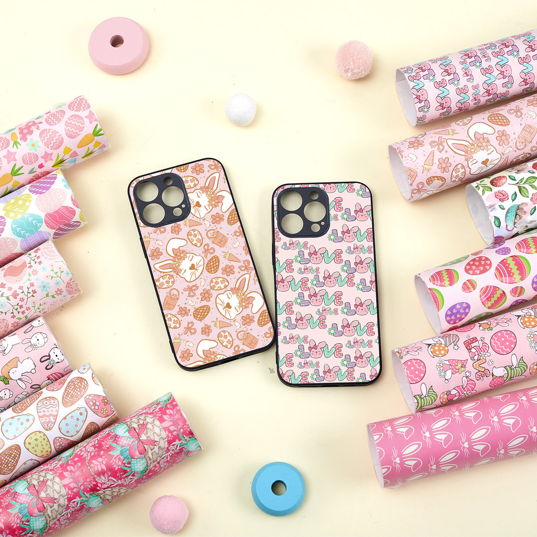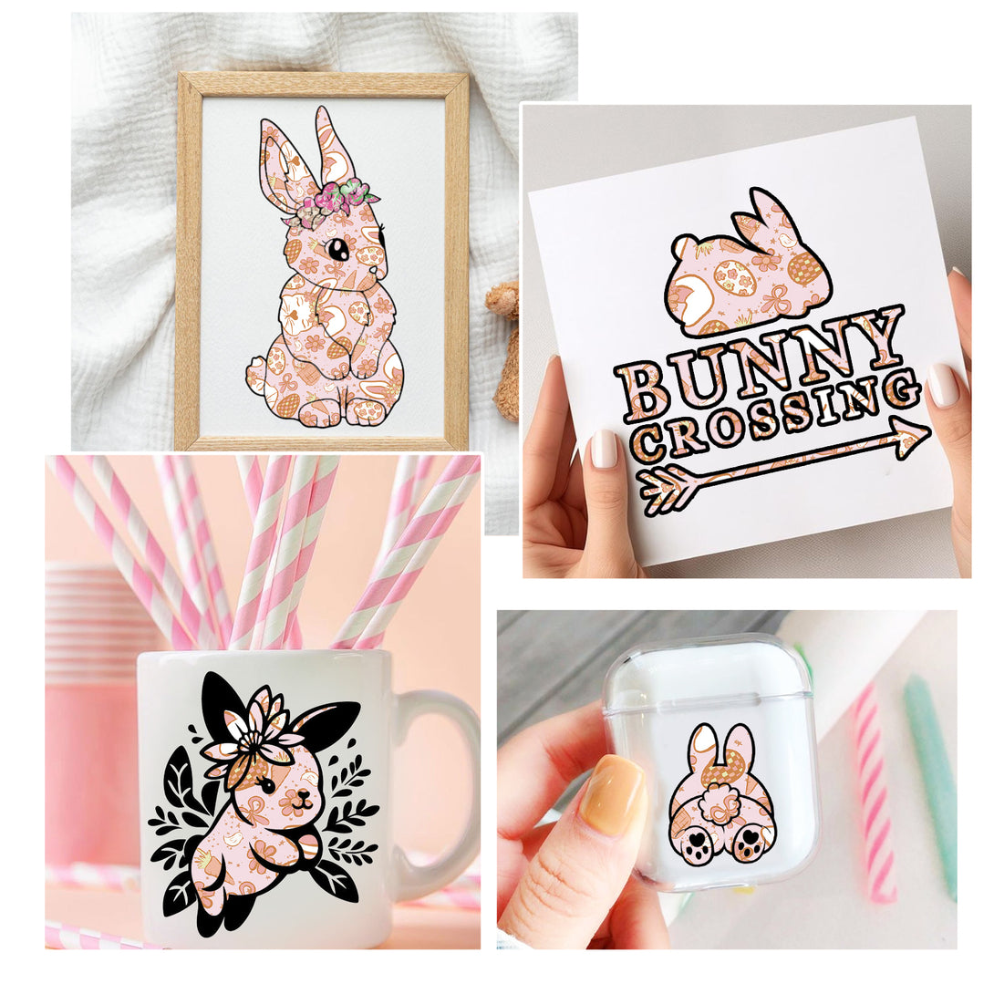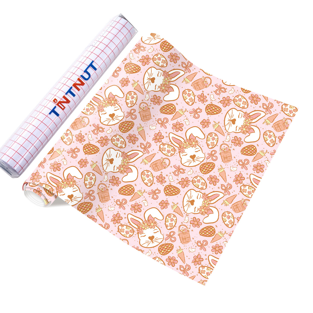 Tintnut Easter Egg Permanent Vinyl, Spring Pastel Pattern Adhesive, Pink Bunny Prints Vinyl, Outdoor for Decor Self Sticker
