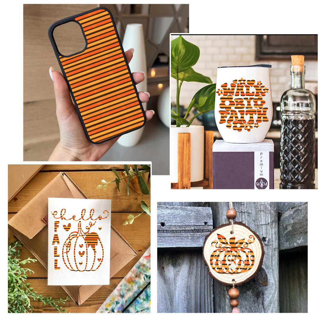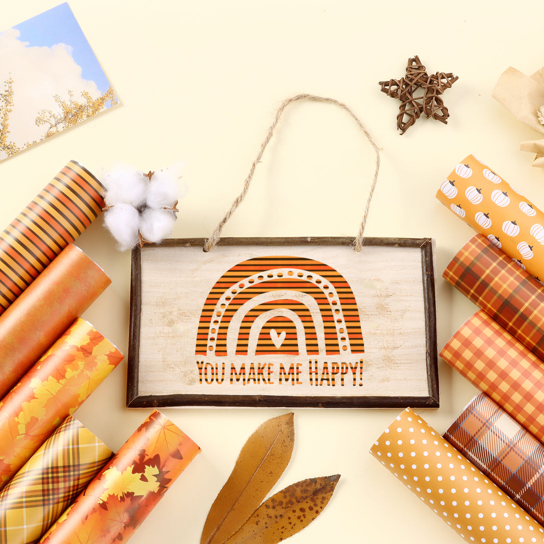 Tintnut Fall Permanent Vinyl,Orange Autumn Pattern Permanent Adhesive Vinyl Compatible with Cricut Machine, Thanksgiving Patterned Vinyl Sheets for Decor Sticker