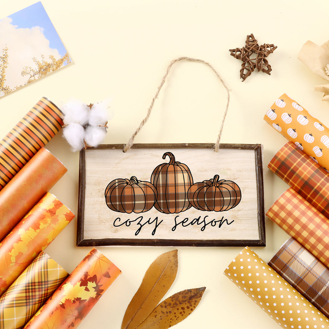 Tintnut Fall Permanent Vinyl,Orange Autumn Pattern Permanent Vinyl Compatible with Cricut Machine, Permanent Vinyl Sheets for Decor Sticker,Self Sticker Water proofing Vinyl