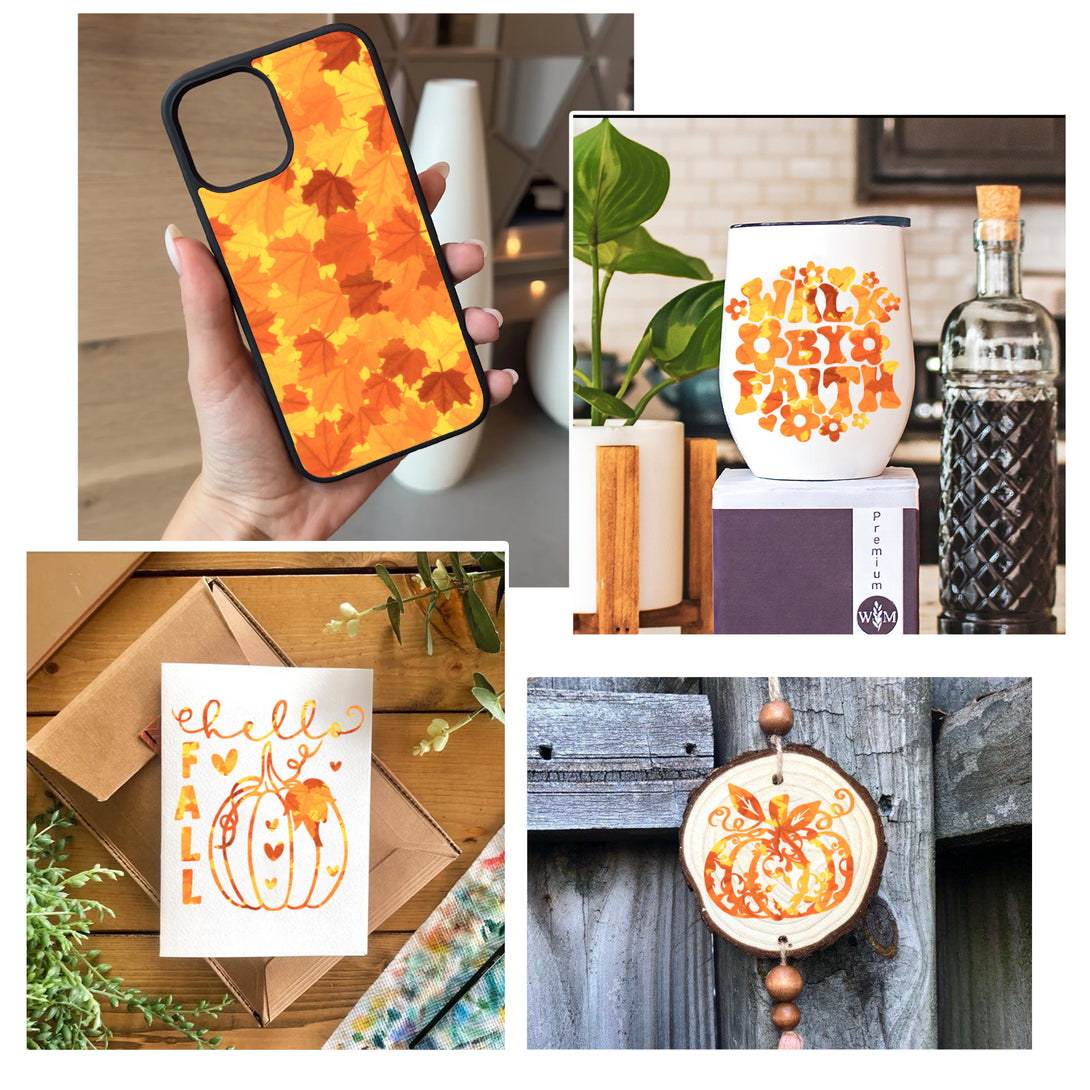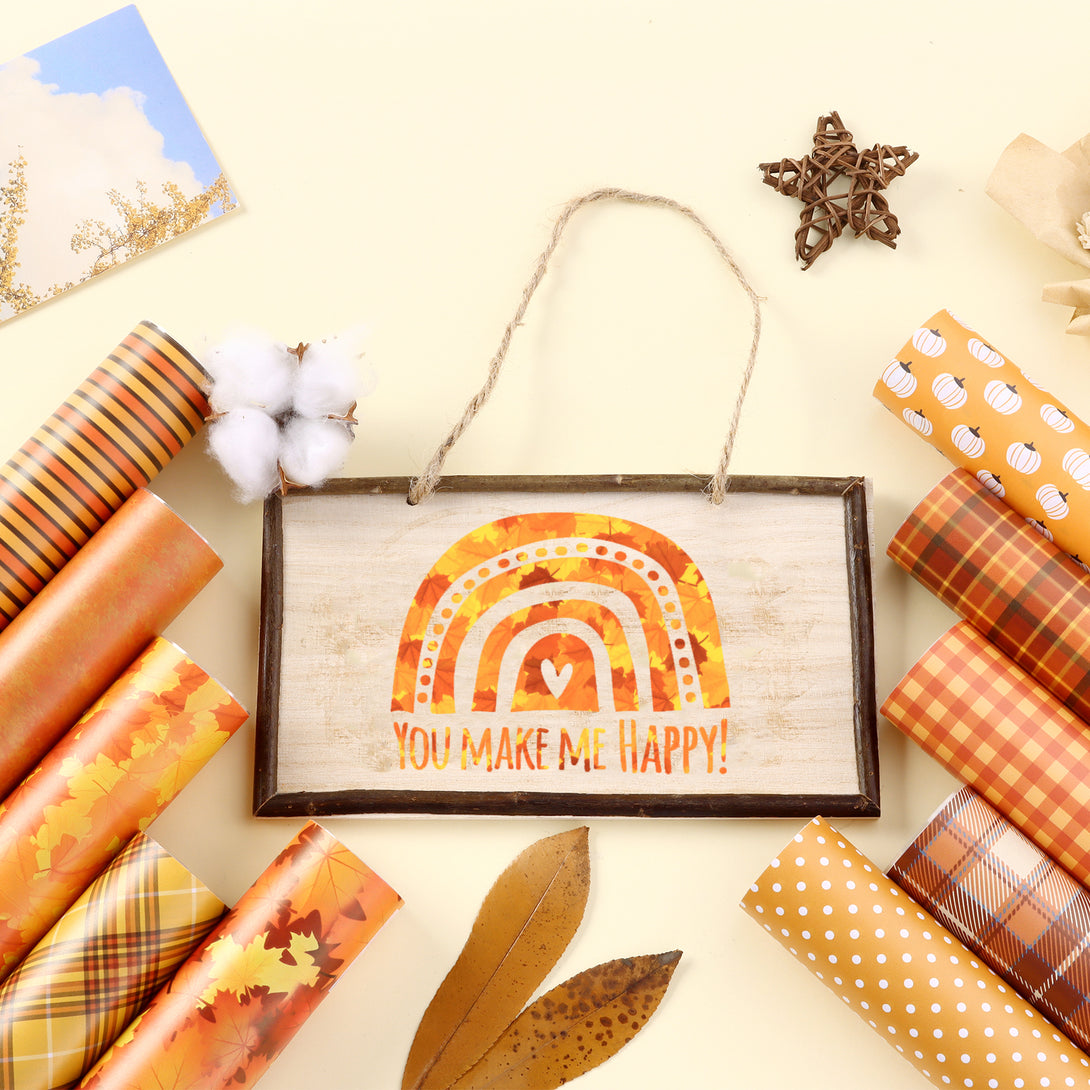 Tintnut Fall Permanent Vinyl,Orange Autumn Pattern Vinyl Compatible with Cricut Machine,Permanent Vinyl Sheets for Decor Sticker,Self Sticker Water proofing Vinyl