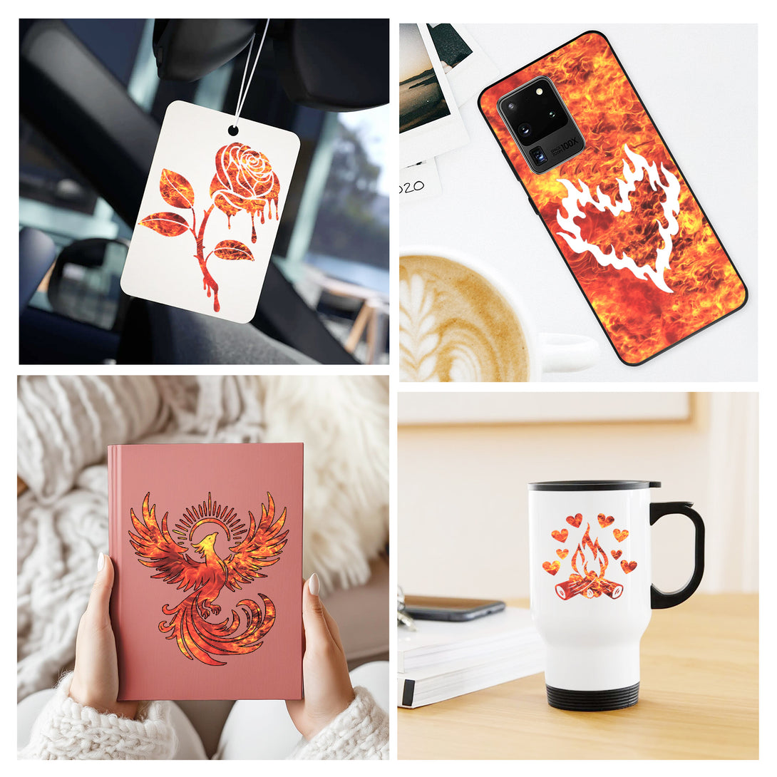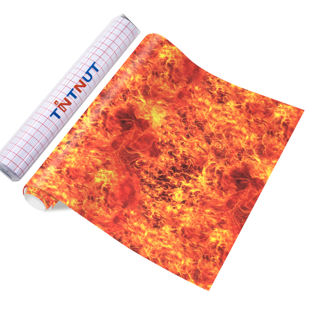 Tintnut Flame Permanent Vinyl,Burning Fire Patterned Permanent Adhesive Vinyl for Cutting Machine,Home Decor Self Sticker