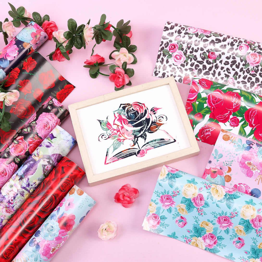 Tintnut Flower Pattern Permanent Vinyl Roses Adhesive Vinyl Sheets,Floral Pattern Self Sticker Water proofing Vinyl