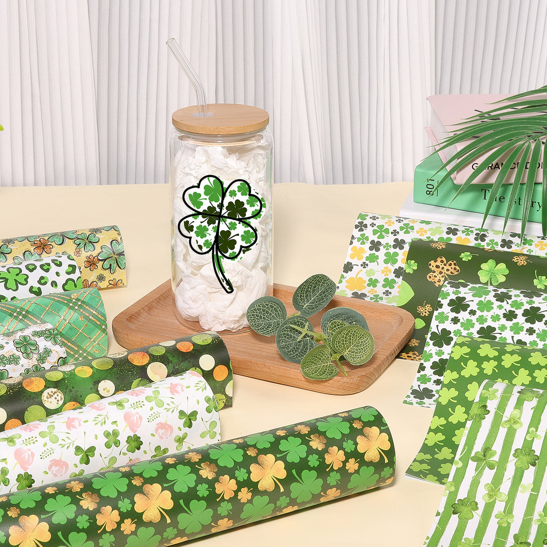 Tintnut Four-leaf Clover Permanent Adhesive Vinyl,Green Permanent Vinyl for Cutting Machine,Waterproof Vinyl for Home Decor Self Sticker