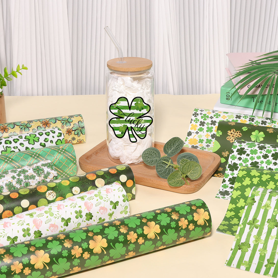 Tintnut Four-leaf Clover Permanent Adhesive Vinyl,Green Permanent Vinyl,Permanent Outdoor Vinyl for Cutting Machine, Self Sticker Water Proofing Vinyl