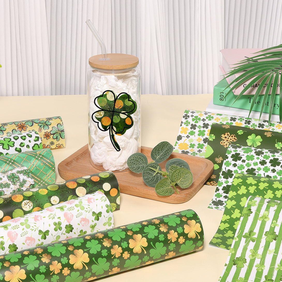 Tintnut Four-leaf Clover Permanent Vinyl,Green Permanent Adhesive Vinyl for Cutting Machine, Self Sticker Water Proofing Vinyl