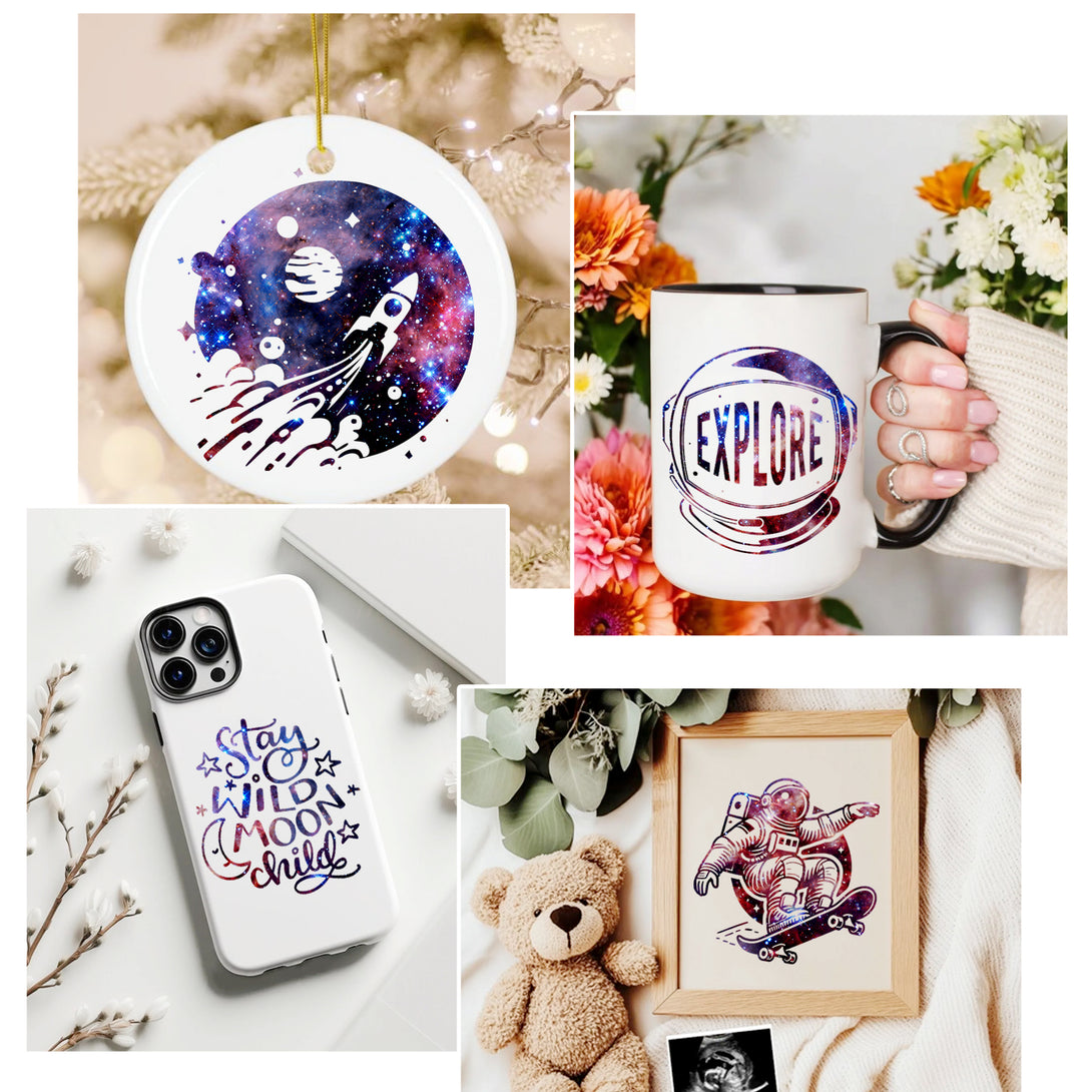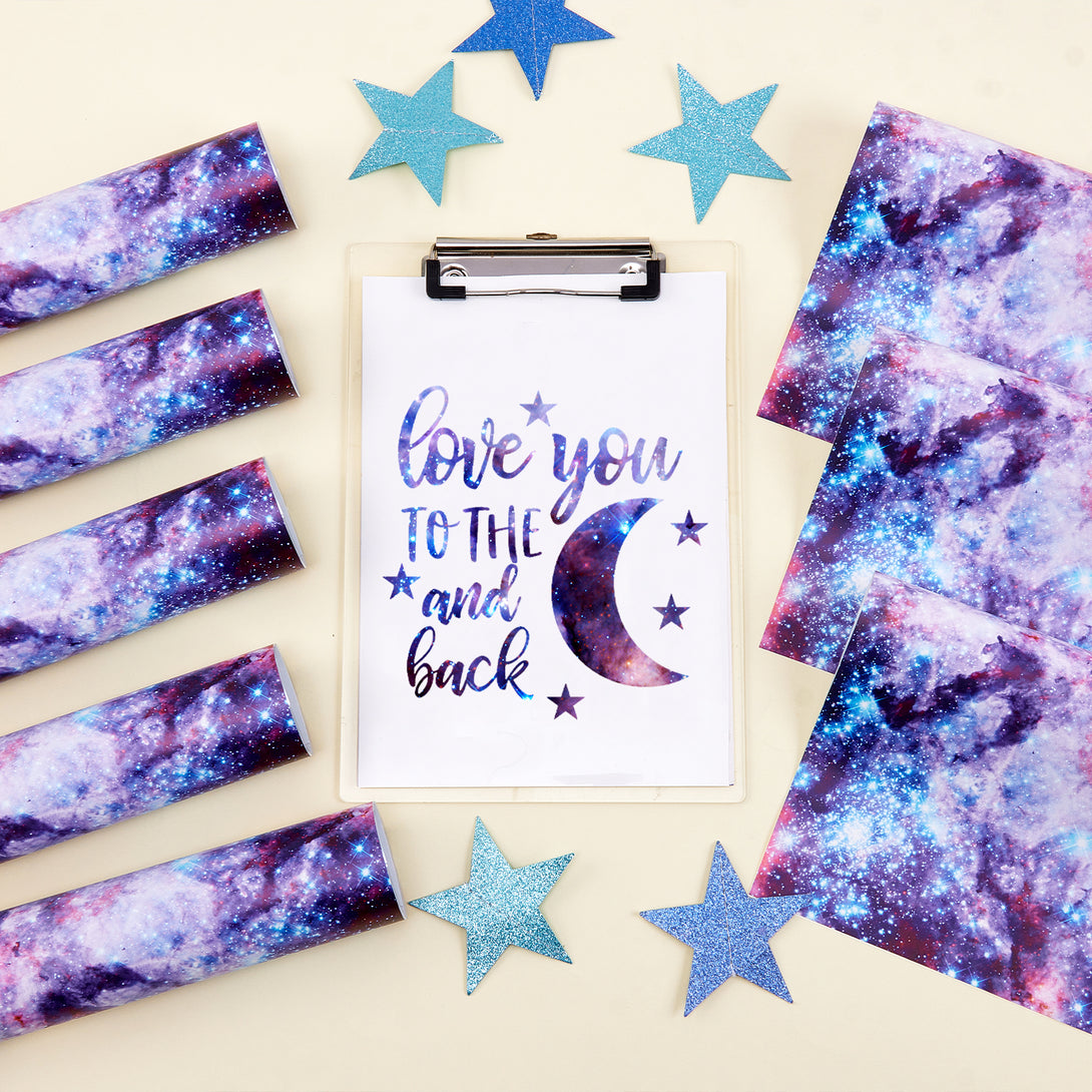 Tintnut Galaxy Pattern Permanent Vinyl Purple Adhesive Vinyl Sheets Watercolor Sticker Water Proofing Vinyl