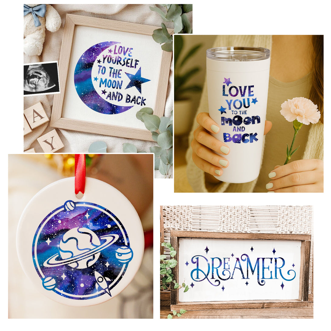 Tintnut Galaxy Permanent Vinyl Drak Purple Pattern Adhesive Vinyl Sheets Watercolor Self Sticker Water Proofing Vinyl