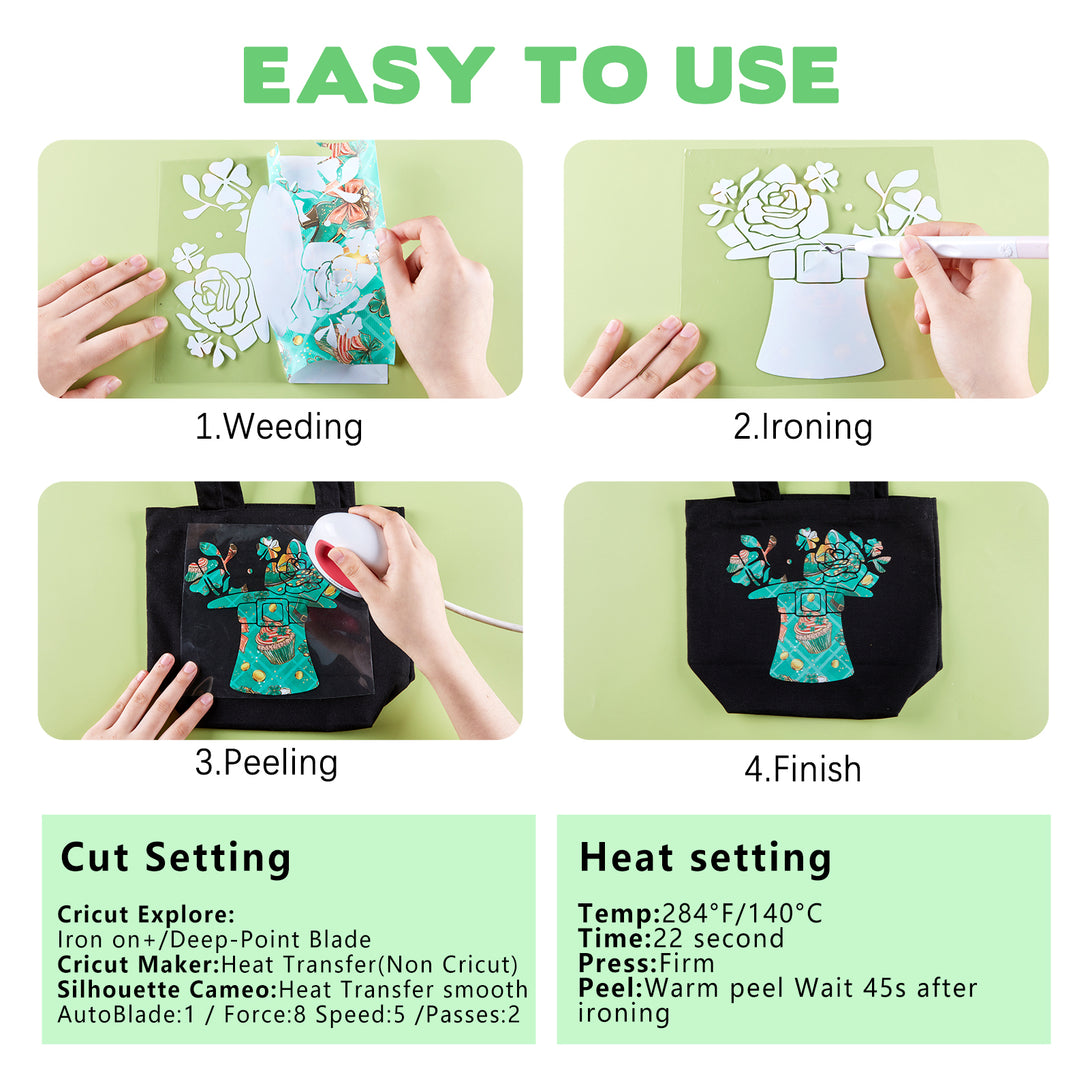 - 【FRIENDLY TO USE】This heat transfer vinyl is easy to cut on any cutting machines. It is aslo design to be easy weed. You can heat firmly with heat press machine and also normal iron to transfer.
