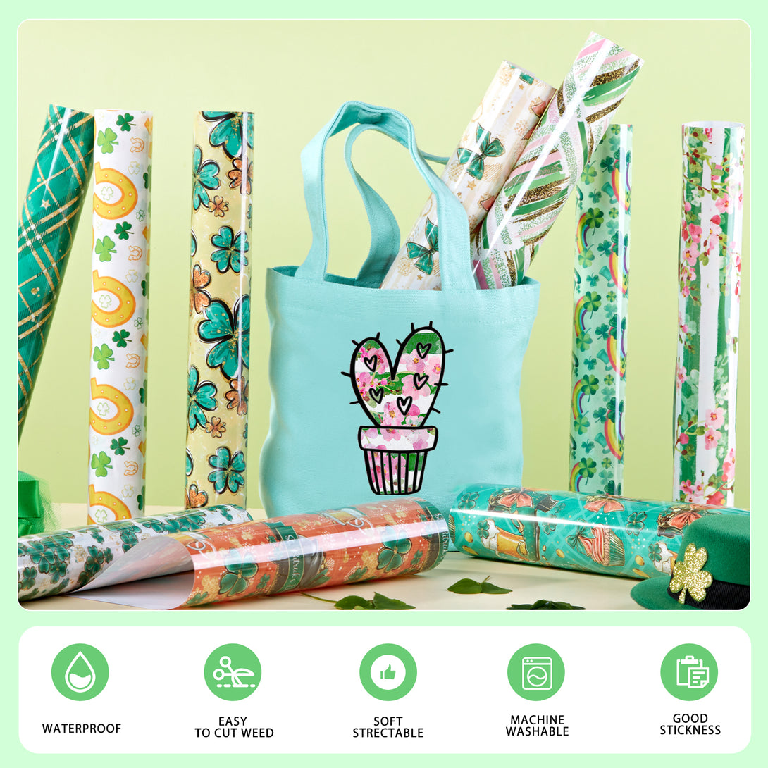 Tintnut Green HTV Vinyl Heat Transfer St Patrick's Day HTV Vinyl Shamrock Heat Transfer Vinyl Clove HTV Iron on Vinyl for T-Shirts DIY