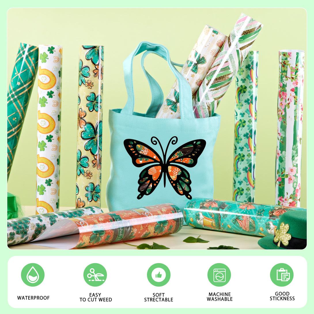 Tintnut Green Vinyl Heat Transfer St Patrick's Day HTV Shamrock HTV Heat Transfer Vinyl Clove HTV Iron on Vinyl for T-Shirts DIY