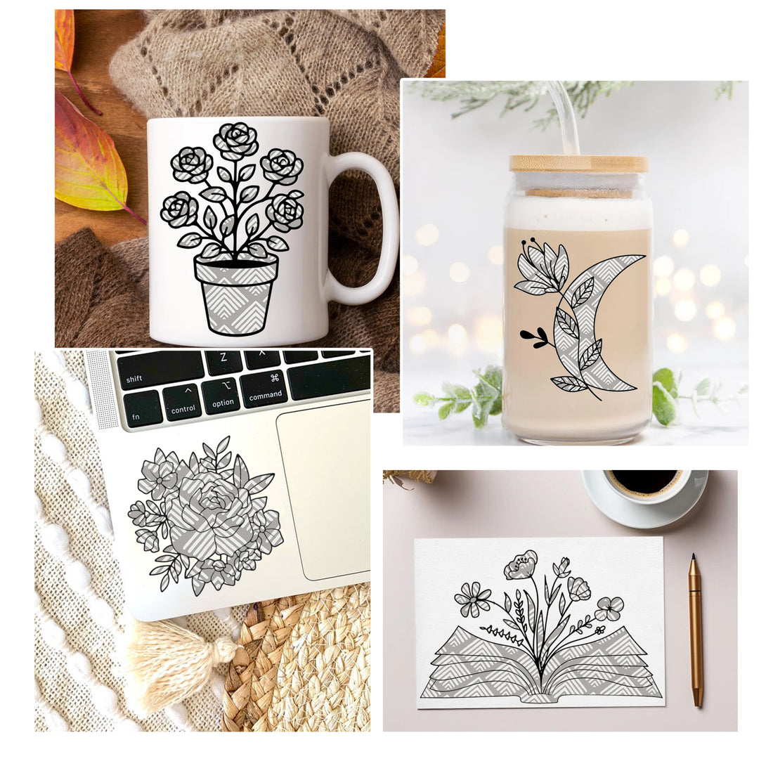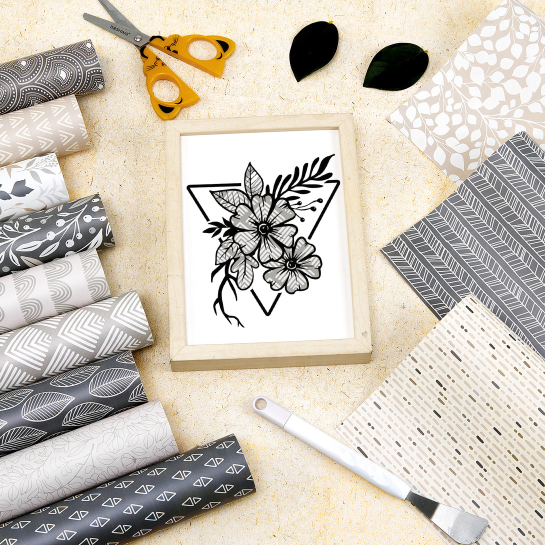 Tintnut Grey and White Boho Permanent Adhesive Vinyl,Grey and White Pattern Self Adhesive Vinyl Boho Permanent Vinyl for Cutting Machine,Self Sticker Water proofing Vinyl