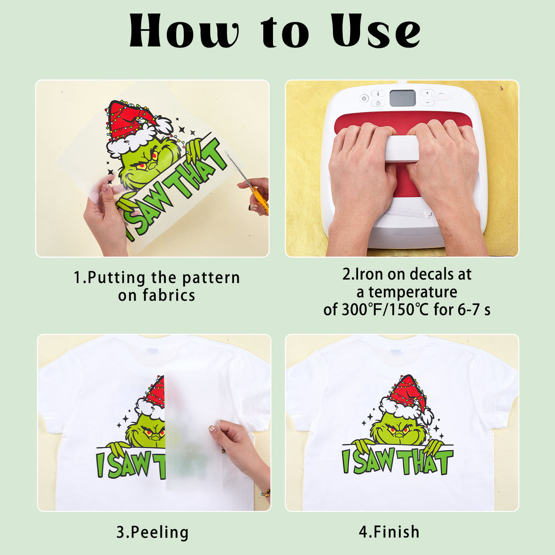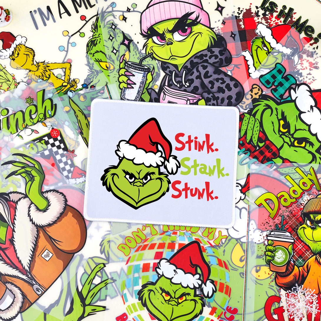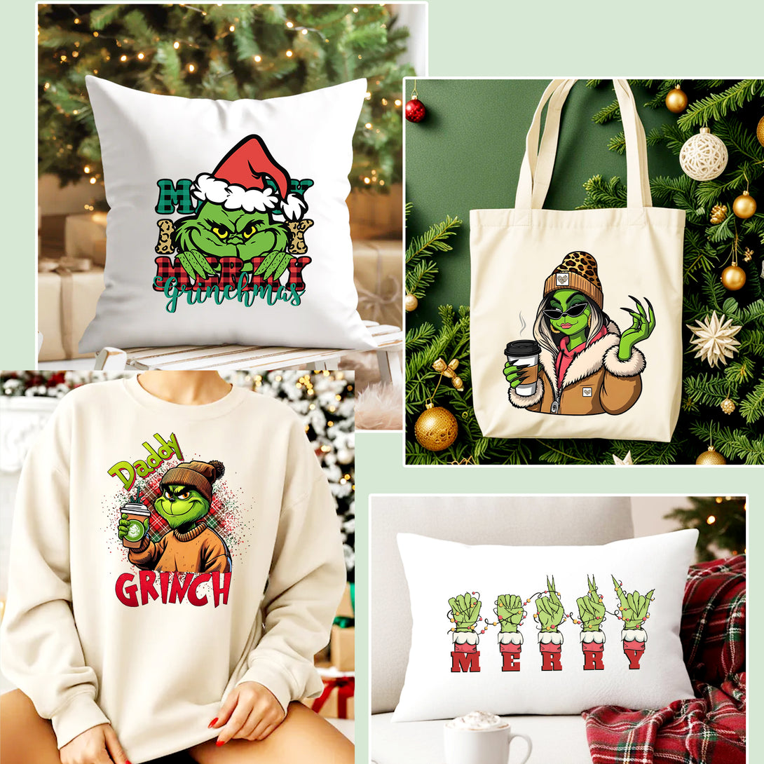 Tintnut Grinch Christmas DTF Transfers Ready to Press Iron on Transfers-16 Sheets Grinch Pattern Iron on Decals for T-Shirts Clothing Heat Transfer Iron on Stickers for Canvas Bag Design