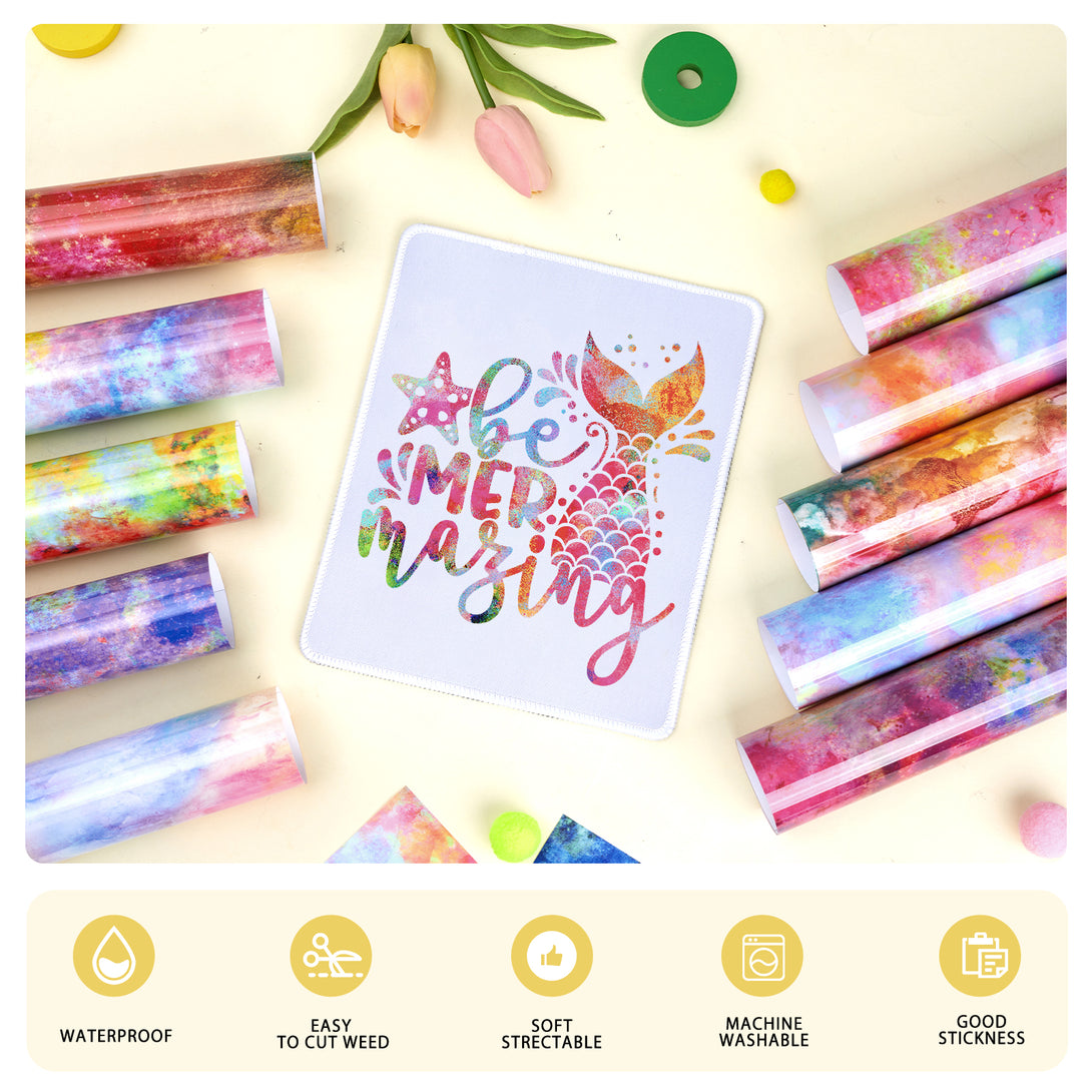Tintnut Grungy Watercolor Heat Transfer Vinyl Neon Color Burst Patterned HTV Iron on Vinyl for T-Shirts, Clothing & Bags DIY